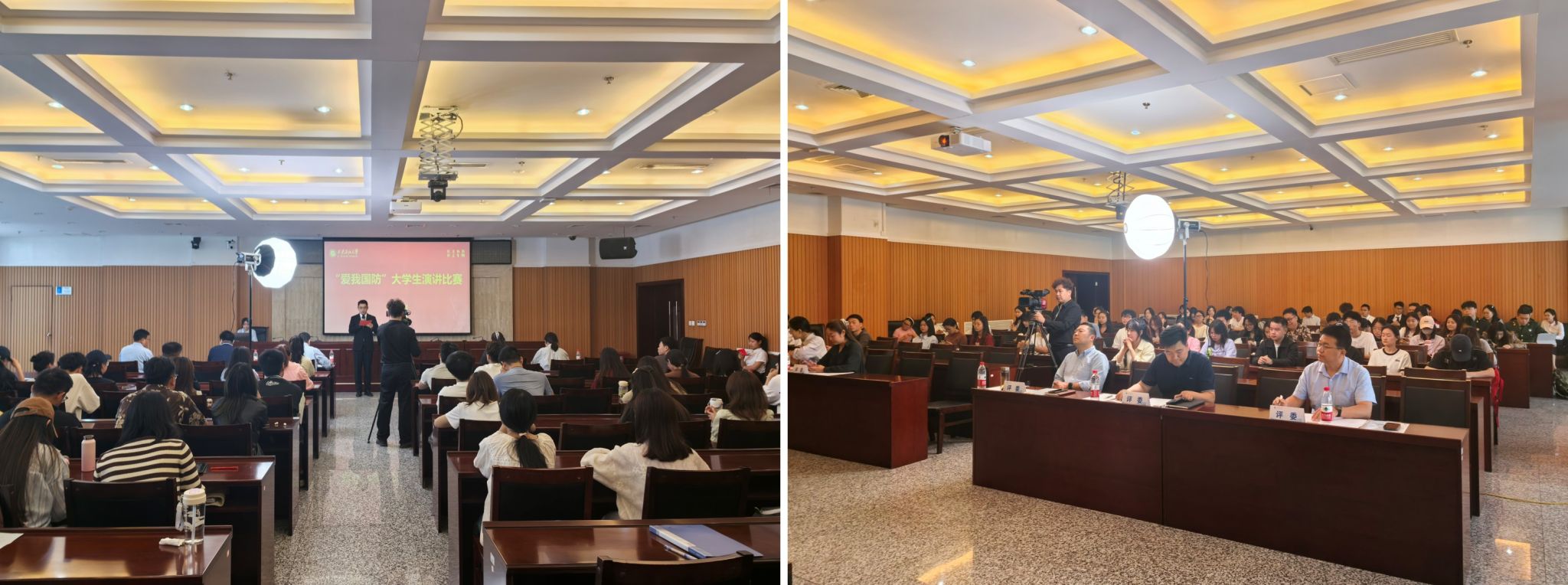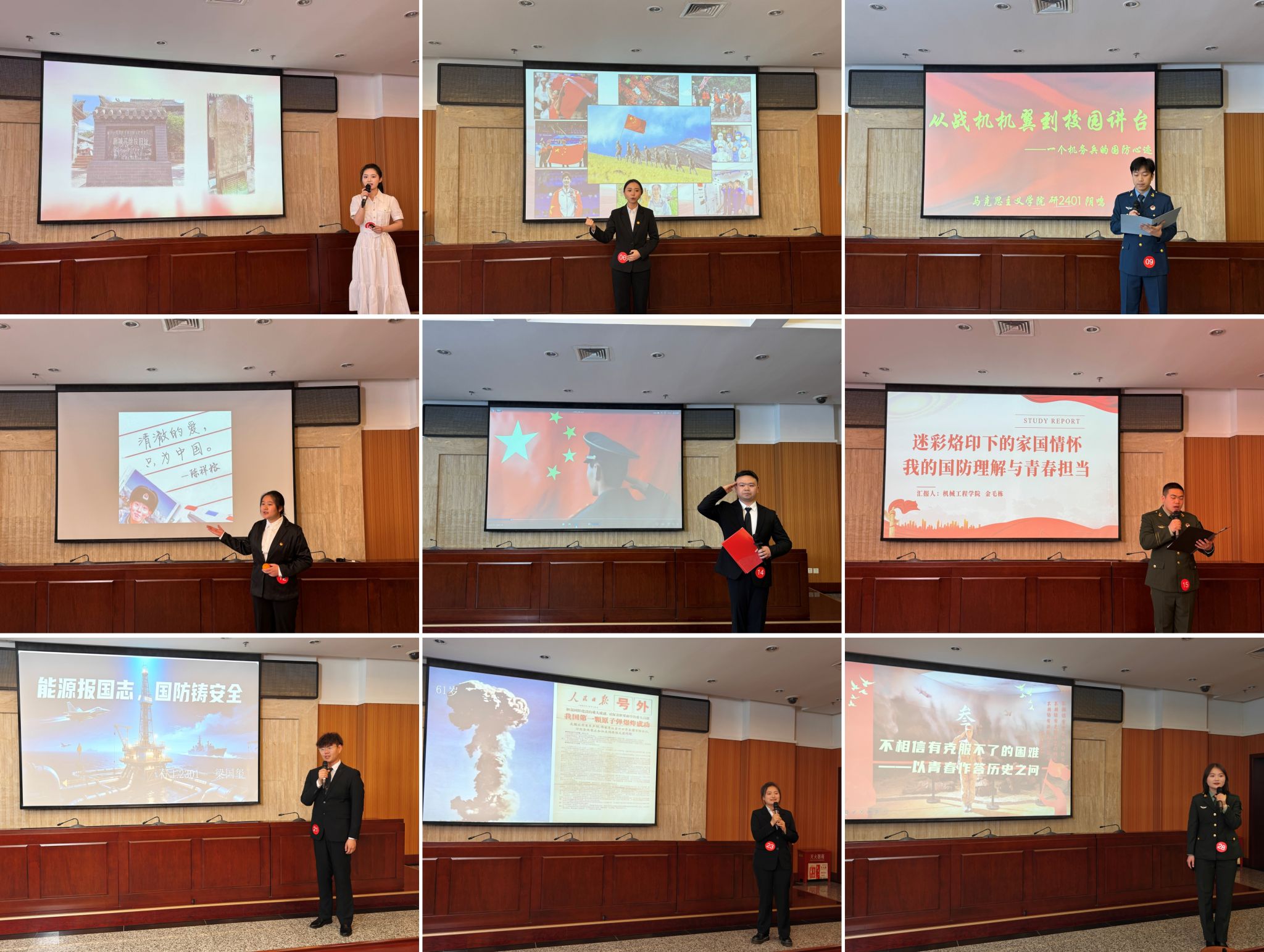 师央依同学以身边人、身边事为切入点,讲述了普通人在国防建设中的责任和担当,引发了在场听众的强烈共鸣……27组选手演讲主题鲜明、内容丰富、形式多样,展现了当代青年学子积极向上、朝气蓬勃、奋发有为的精神风貌。
