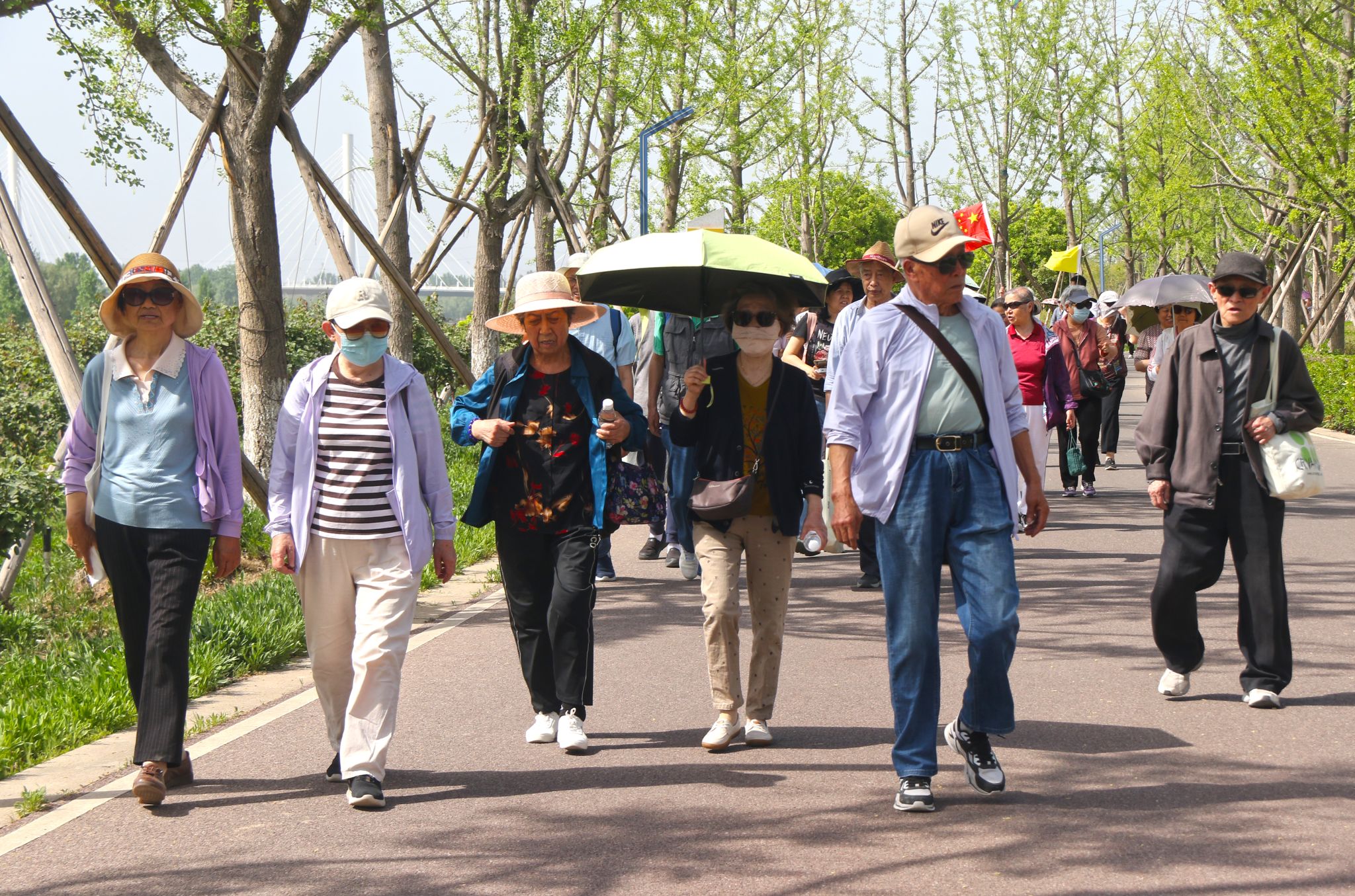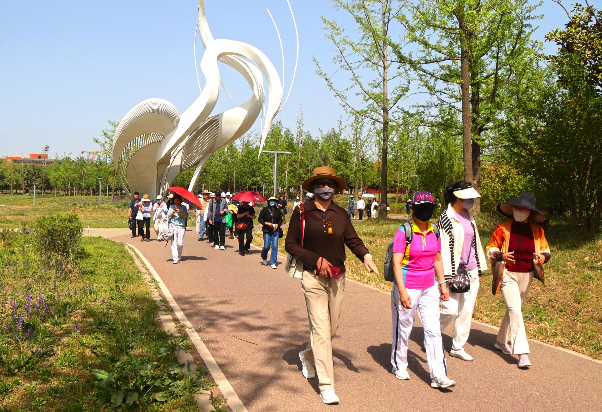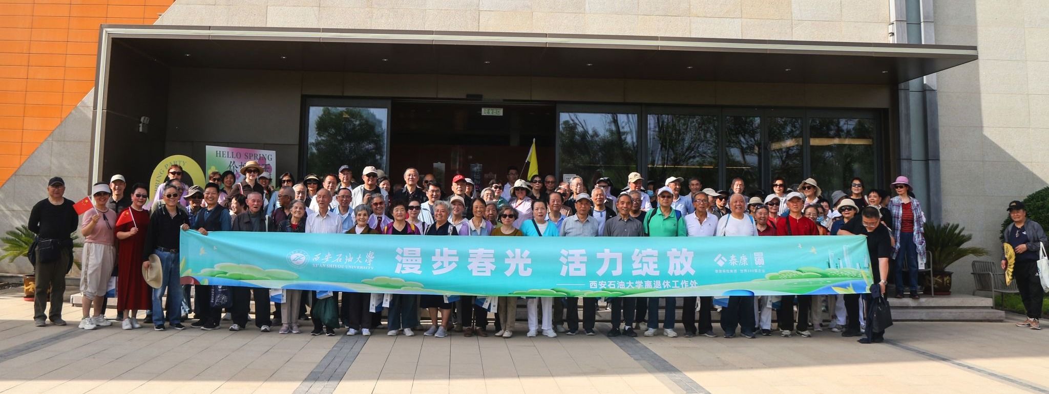 离退休教职工老同志共130余人,探访泰康之家·秦园智慧养老社区,漫步沣河梁家滩湿地运动公园。