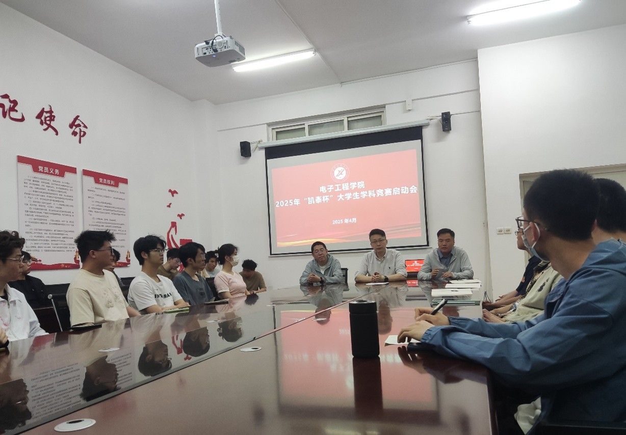 在行知楼321会议室召开2025年“凯泰杯”大学生学科竞赛启动会。院长李飞、实验中心教师代表、辅导员及各年级20余名学科竞赛参赛学生代表参会。