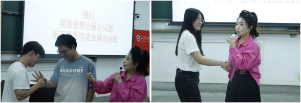 在讲座中,张烨还通过“手指变长”等互动游戏,让学生干部们亲身体验“动作创造情绪”的心理学原理。本次讲座不仅为学生干部系统传授了管理实务技巧,助力其提升情绪管理能力,进一步培养学生干部的责任感、使命感,提升了学生干部服务学生工作的能力。