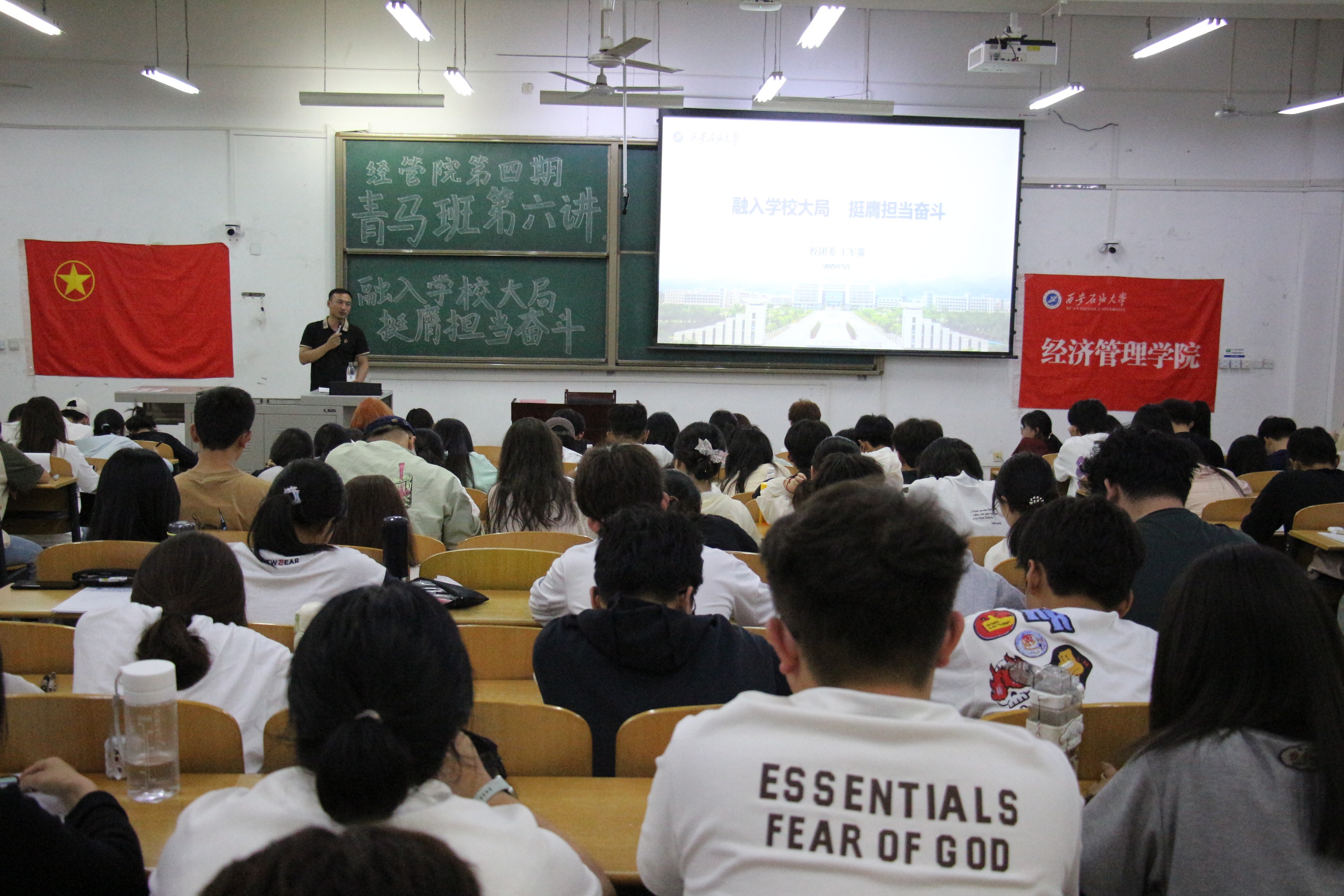 第四期“青年马克思主义者培养工程”学生干部培训班第六讲在鄠邑校区博思楼112教室举办,校团委副书记王军策应邀担任主讲,2024级参训学生干部160余人参加本次课程。