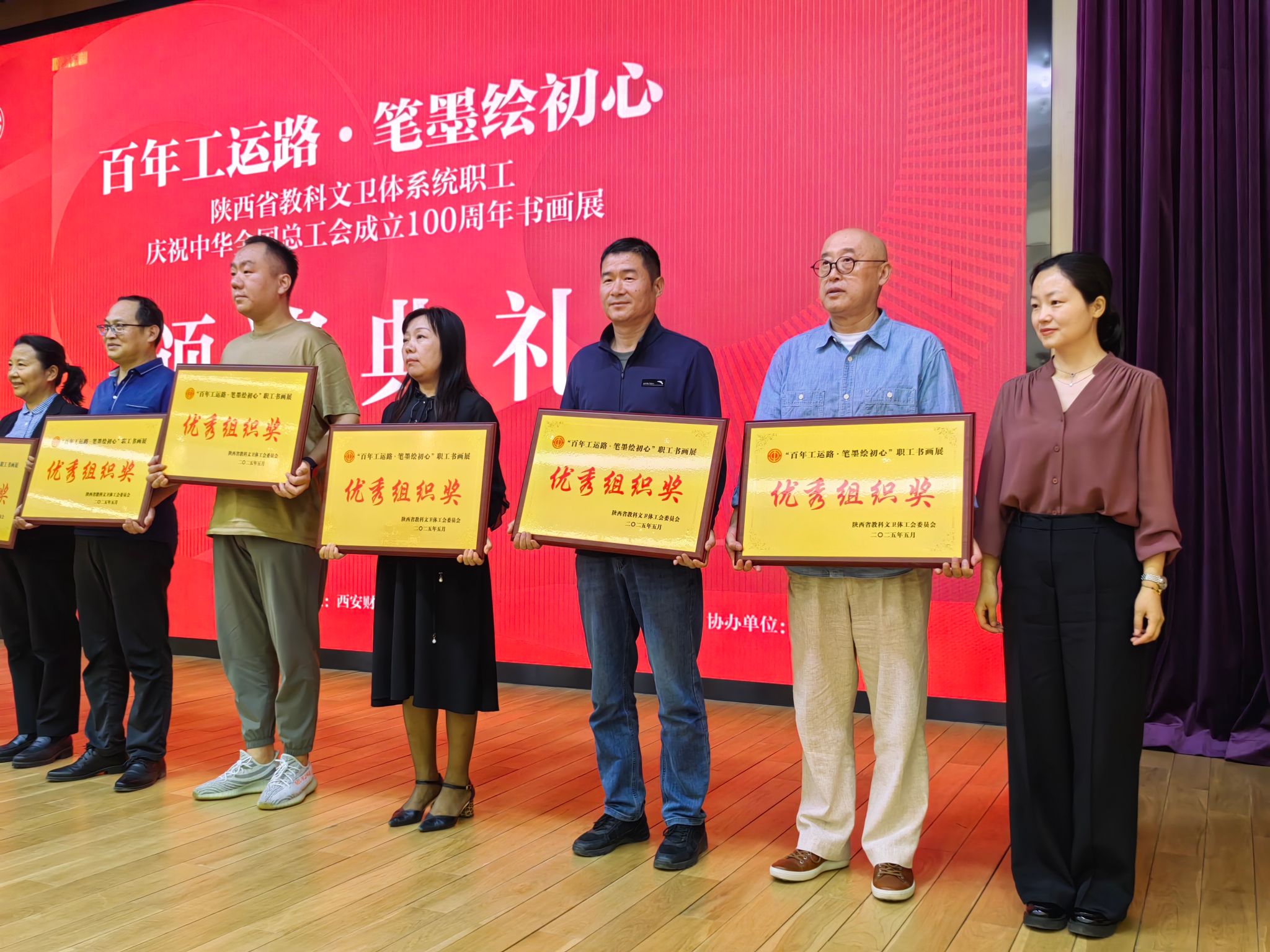 为庆祝中华全国总工会成立100周年,5月9日上午,“百年工运路·笔墨绘初心”陕西省教科文卫体系统职工书画展在陕西省图书馆盛大开幕。