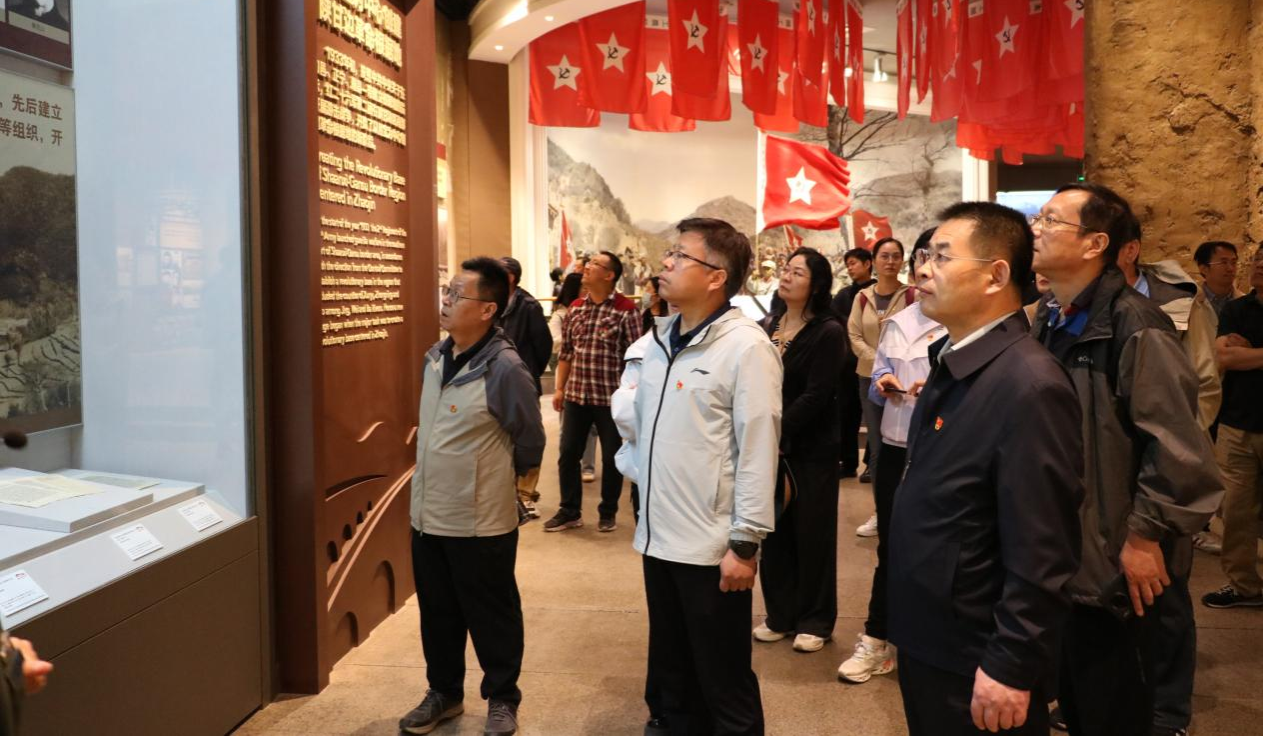 在位于庆阳市华池县的南梁革命纪念馆,全体党员瞻仰革命烈士纪念碑,向革命烈士敬献花篮,重温入党誓词,追思革命先烈的丰功伟绩。参观荔园堡陕甘边区苏维埃政府旧址,学习陕甘根据地在中国革命事业中“两点一存”的历史性贡献。参观南梁革命纪念馆新馆,全方位、立体式学习了波澜壮阔的陕甘边区革命斗争史,深切缅怀刘志丹、谢子长、习仲勋等老一辈无产阶级革命家。参观南梁廉政教育馆,领悟提高党性修养和廉政意识的重要性,接受思想洗礼。