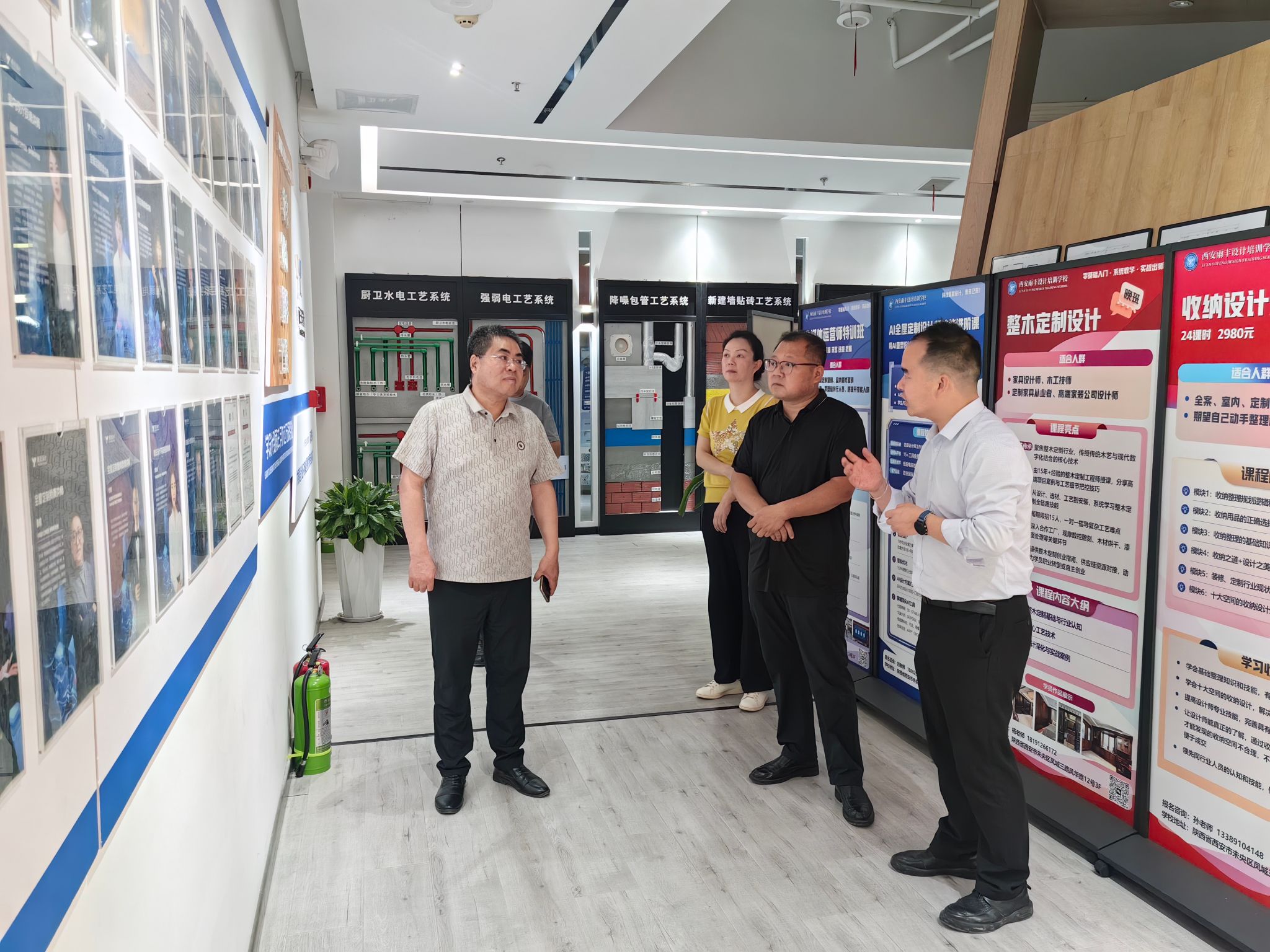 合作经验,提出三点合作方式:一是开设定制化课外讲座,帮助学生把握行业前沿动态;二是开展专业课程共建,引入企业实操经验;三是组建实验班,通过定期实训和职场模拟提升学生实践能力。座谈结束后,余小勇一行实地考察了该校专业实训室、作品展示区和数字化教学设施,深入了解教学实施情况。