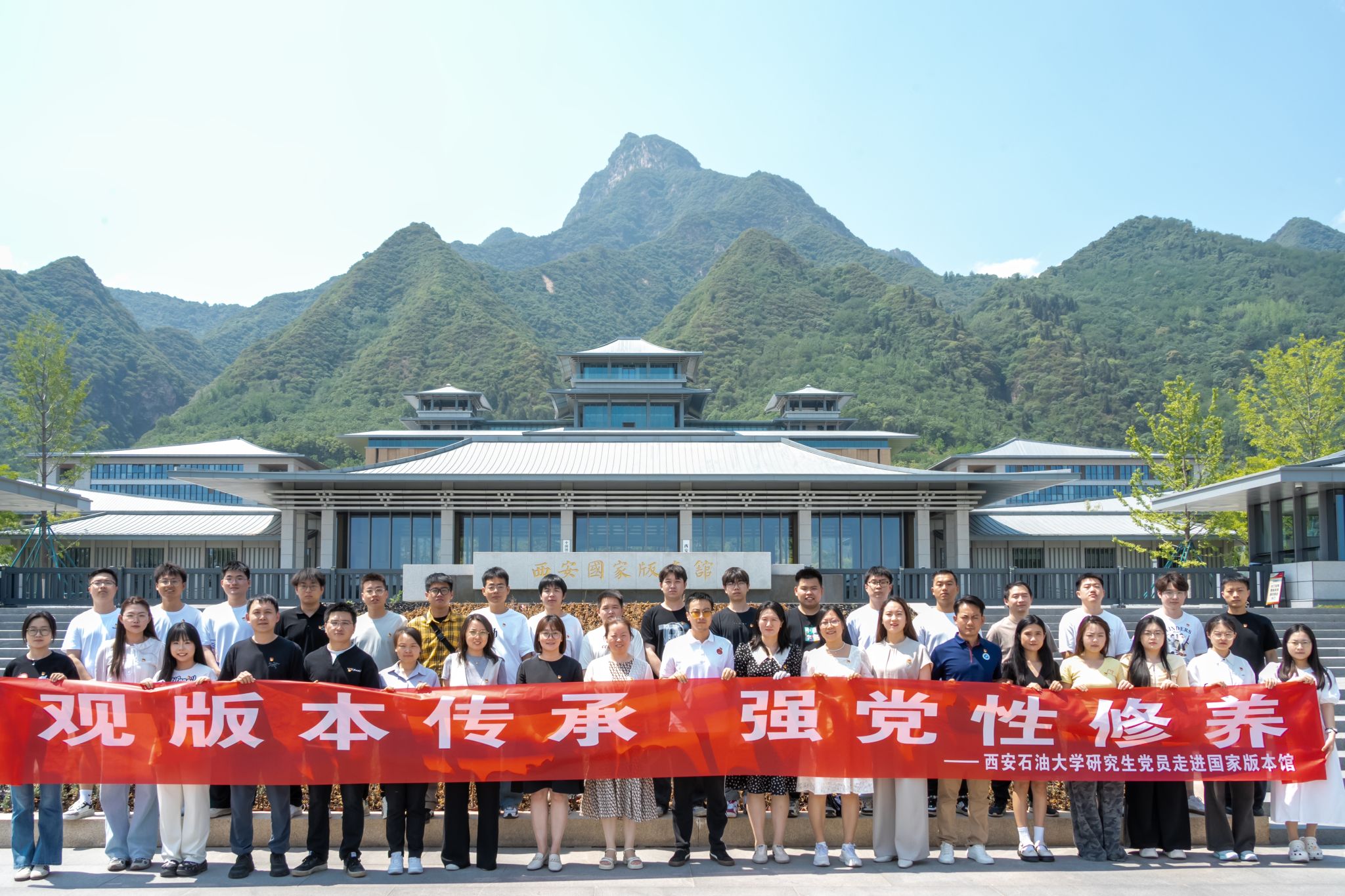 研究生工作部组织2025年“十佳研究生党支部”支部委员、“十佳研究生党员”和研究生辅导员代表,前往西安国家版本馆开展“观版本传承 强党性修养”主题党日活动。