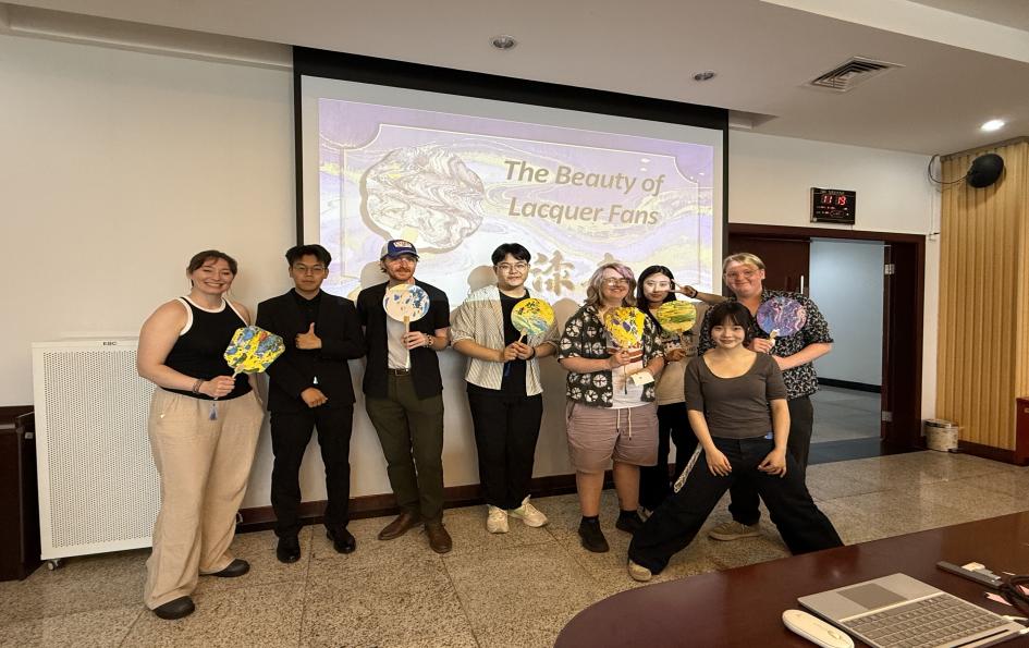 活动期间,一系列极具中国传统文化特色的体验项目精彩纷呈。在剪纸课堂上,美国学生手持剪刀,在指导老师的帮助下,将红纸裁剪成形态各异的窗花;茶艺体验环节,他们学习温杯、投茶、冲泡等工序,品味茶香的同时感受“和、静、雅”的茶道精神;漆扇制作活动中,学生们亲手绘制扇面,在色彩与线条间触摸传统手工艺的魅力。这些沉浸式体验让美国学生直观感受中国传统文化的博大精深,也让参与活动的中国学生在文化传播中深化了对本土文化的理解。