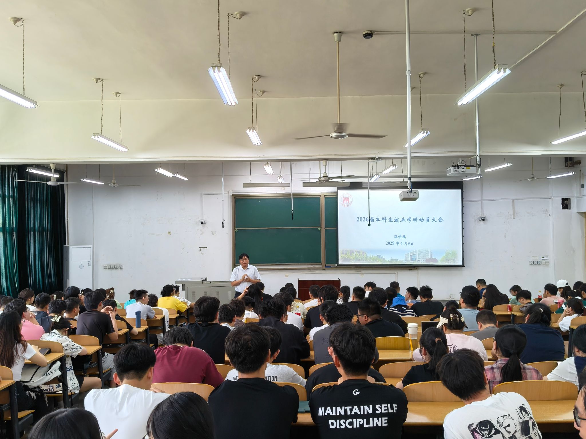 毕业生就业、考研情况,结合详实的数据和最新政策,深度剖析了当前存在的机遇和挑战。他引导全体2026届毕业生树立正确的就业观念,合理评估自身学习能力和综合素质水平,鼓励同学们做出最正确的生涯选择。他给同学三点建议:一是认清形势,把握时代脉搏,明确努力方向;二是充满信心,挖掘自身优势,强化核心竞争力;三是准确定位,科学规划,实现精准突破。