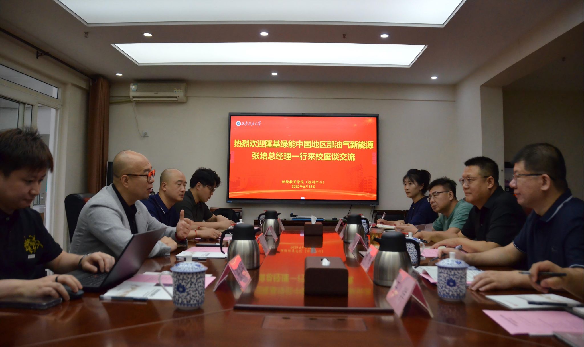 6月18日上午,隆基绿能中国地区部油气新能源事业部总经理张培一行4人来德州扑克