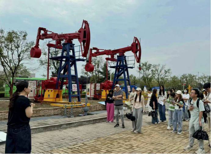 实验室。在采油钻井实训室、集输实训平台和地球科学科普教育地质实训平台,大家认真聆听讲解,对展示的石油开采、炼制、储运等多方面的先进技术模型表现出浓厚兴趣。翻译2402班陈琳同学表示:“这种‘专业知识+语言实践’的模式,让我们真切体会到翻译不仅是语言转换,更是行业知识的跨文化传递。”