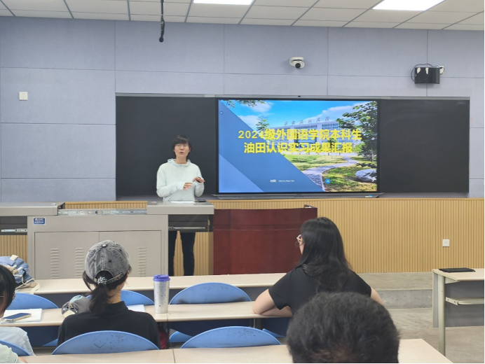 在成果汇报环节,2024级英语、翻译、俄语3个专业7个班级以双语调研报告、演讲、实习题材摄影成果展示等形式展示实习收获。展现外语能力与能源知识的融合成果,为实习画上圆满句号。各班级汇报既展现了油气勘探流程、压裂技术等行业知识的认知成果,也突出外语在技术文档翻译、国际合作沟通中的应用实践。各班班主任老师对学生将语言能力与能源行业深度结合的成果给予高度评价。