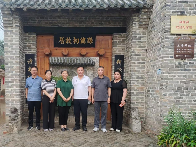 溯源精神故乡:校地协同打造红色教育实践基地。在濮阳县白堽乡孙健初故居,调研组在濮阳县政协副主席张常伟、文旅体局局长靳慧聪,白堽乡党委书记刘春霞、人大主席张永军、副乡长张彦彦等陪同下,实地走访了全国科学家精神教育基地——孙健初故居纪念馆,详细了解孙健初的成长历程与家族传承。随后召开的座谈会上,双方就“校地协同弘扬孙健初科学家精神”展开交流,探讨史料联动挖掘、教育联动实践、文化联动传播措施。