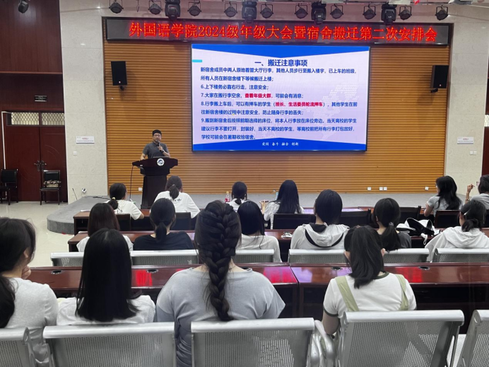 6月15日、7月2日,学工办副主任、2024级辅导员陈浩召开两次年级大会,详细安排宿舍搬迁事宜,并解答学生疑问。