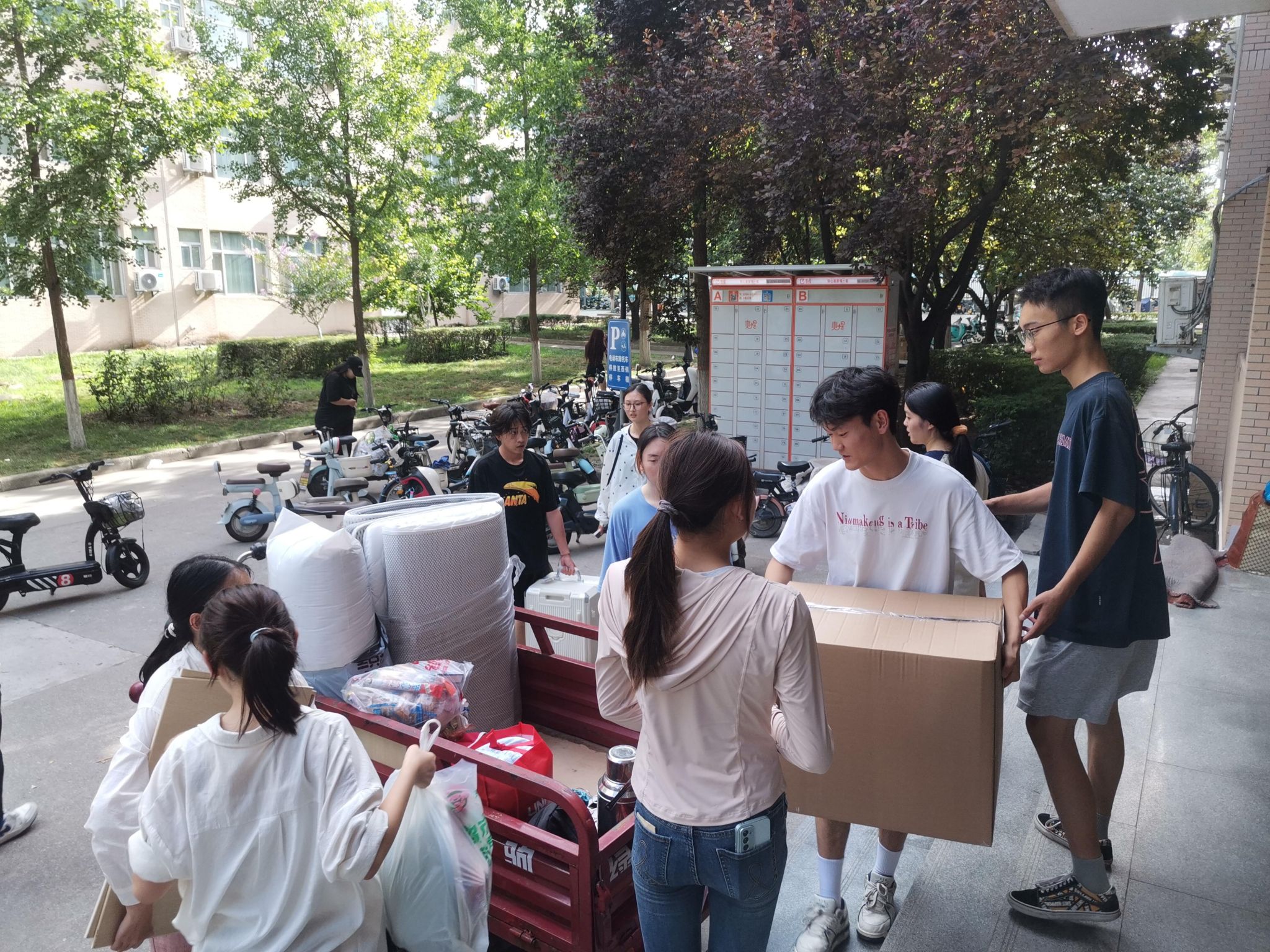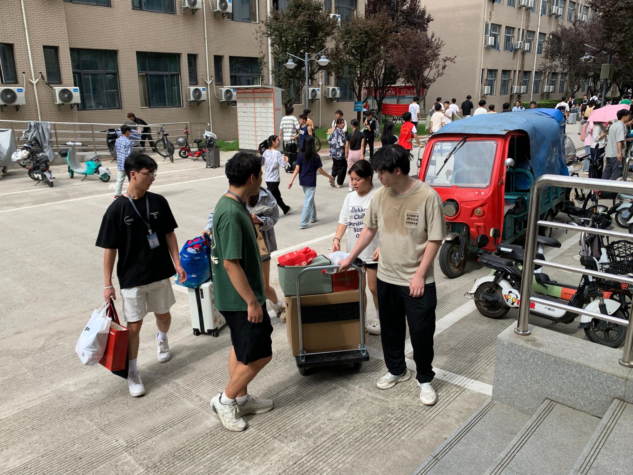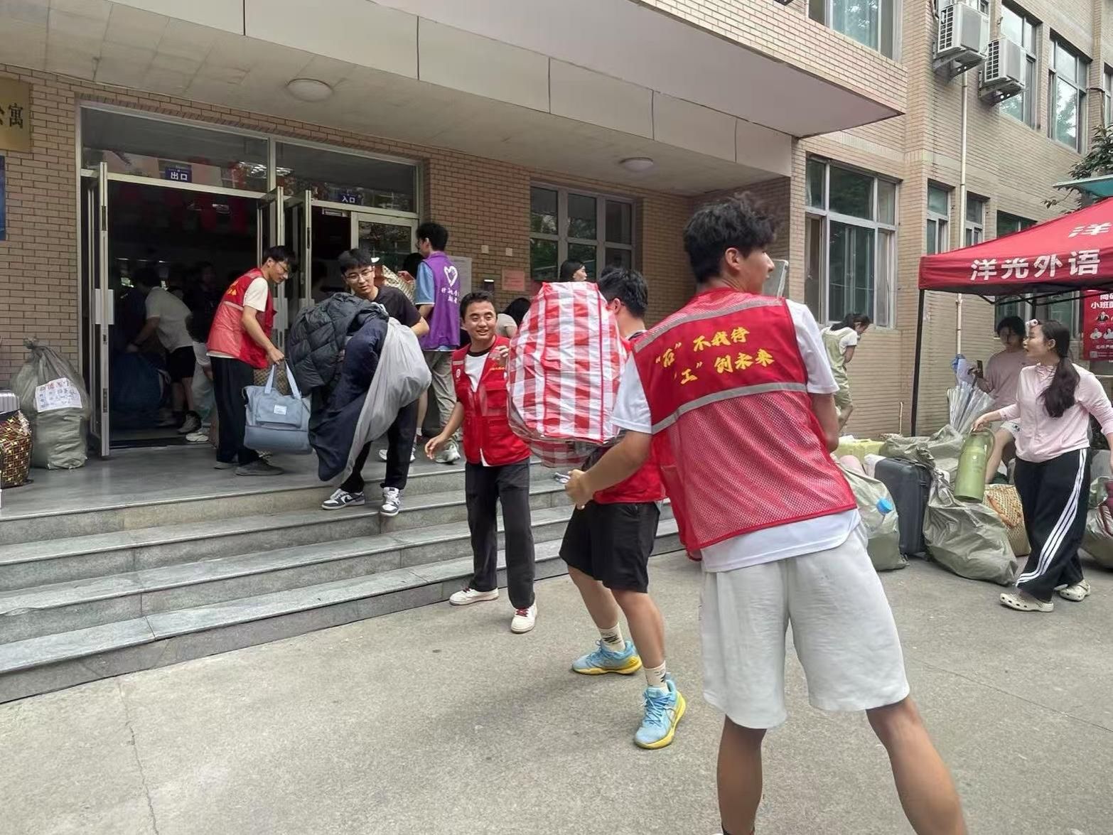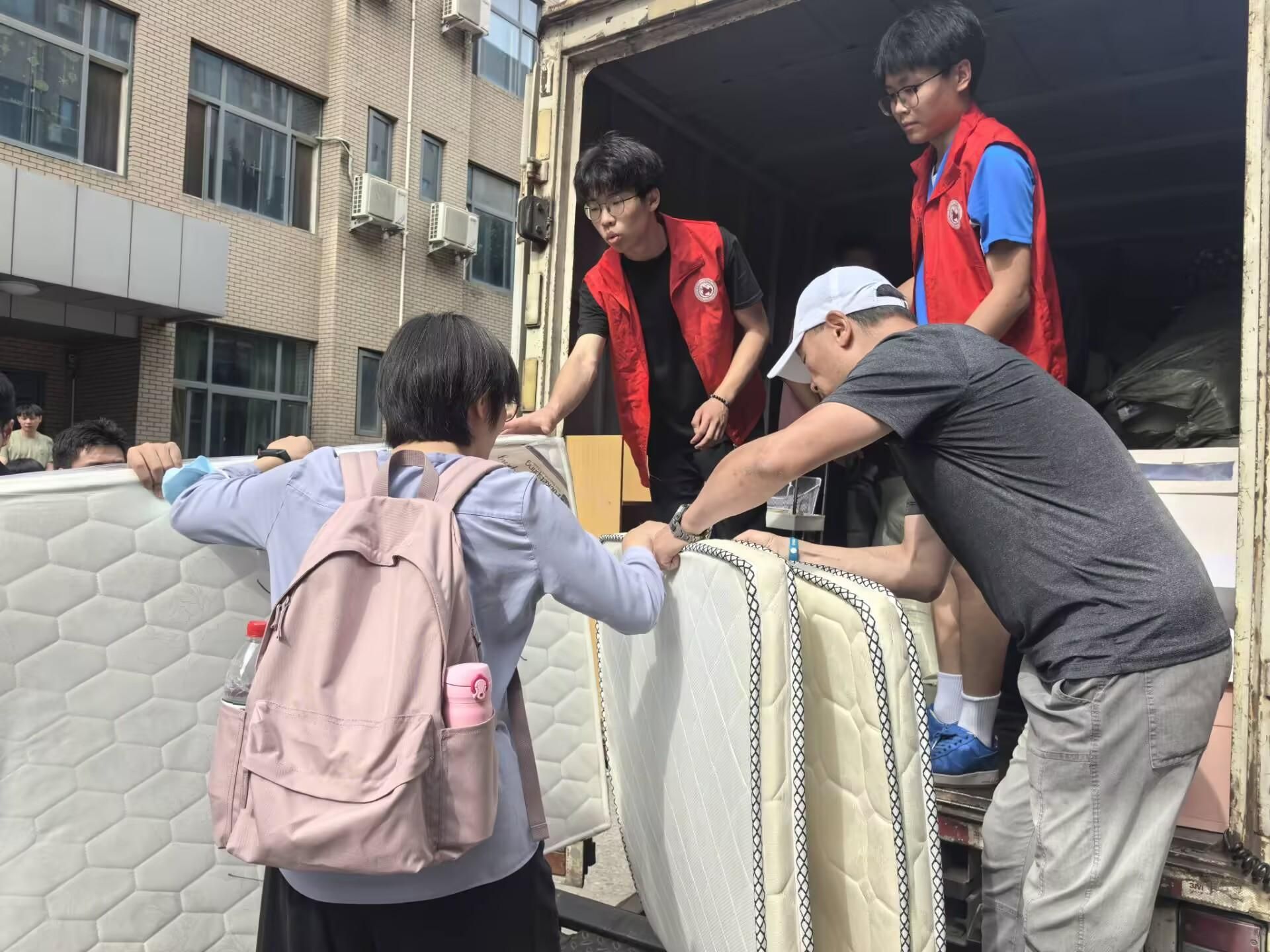 共租赁16辆搬运车帮助同学搬迁,现场设置“免费饮用水供应点”、“医疗服务点”、“解暑绿豆汤”供应点等暖心举措。各院(系)分别通过召开学生搬迁动员会、学生干部会议、成立搬迁工作志愿服务队等形式,深入了解学生需求,聚焦解决学生关切的困难和问题,为顺利搬迁奠定了基础,搬迁现场到处充满着温馨和谐的气氛。