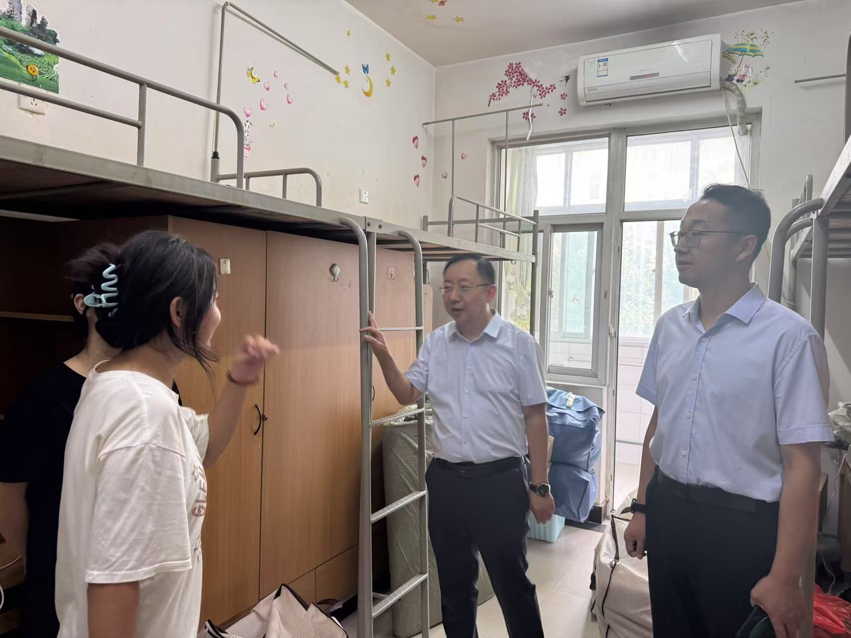 为进一步了解学生入住情况,帮助同学们尽快适应新环境,学生工作部(处)相关负责人和学工干部多次深入学生宿舍,看望慰问正在收拾内务的同学们,详细了解同学们搬迁后的生活安排与住宿感受,询问大家在新环境中是否存在困难,并鼓励大家保持良好心态,积极投入到接下来的学习与生活中。