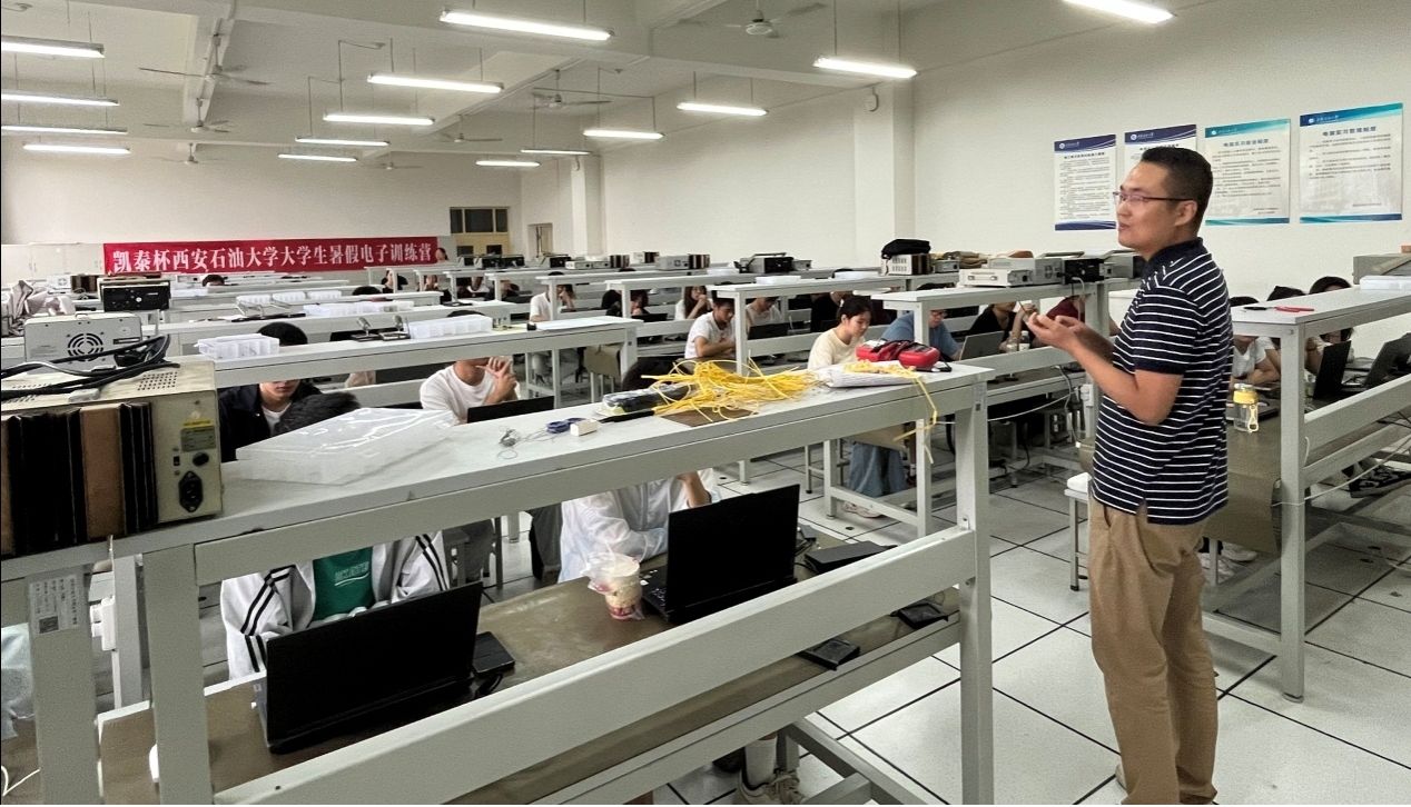 联合江苏建湖凯泰石油机械有限公司,成功举办首届“凯泰杯”大学生暑期电子训练营。本次训练营吸引了来自全校的60余名同学,其中大一学生占比超过90%。训练营通过理论授课、实操演练、项目竞技等多元形式,为参训学员搭建了一个探索电子世界、提升创新能力的实践平台,通过系统化实践训练和暑期任务跟踪,探索“离校不离学,实践不断线”的暑期创新能力提升路径。