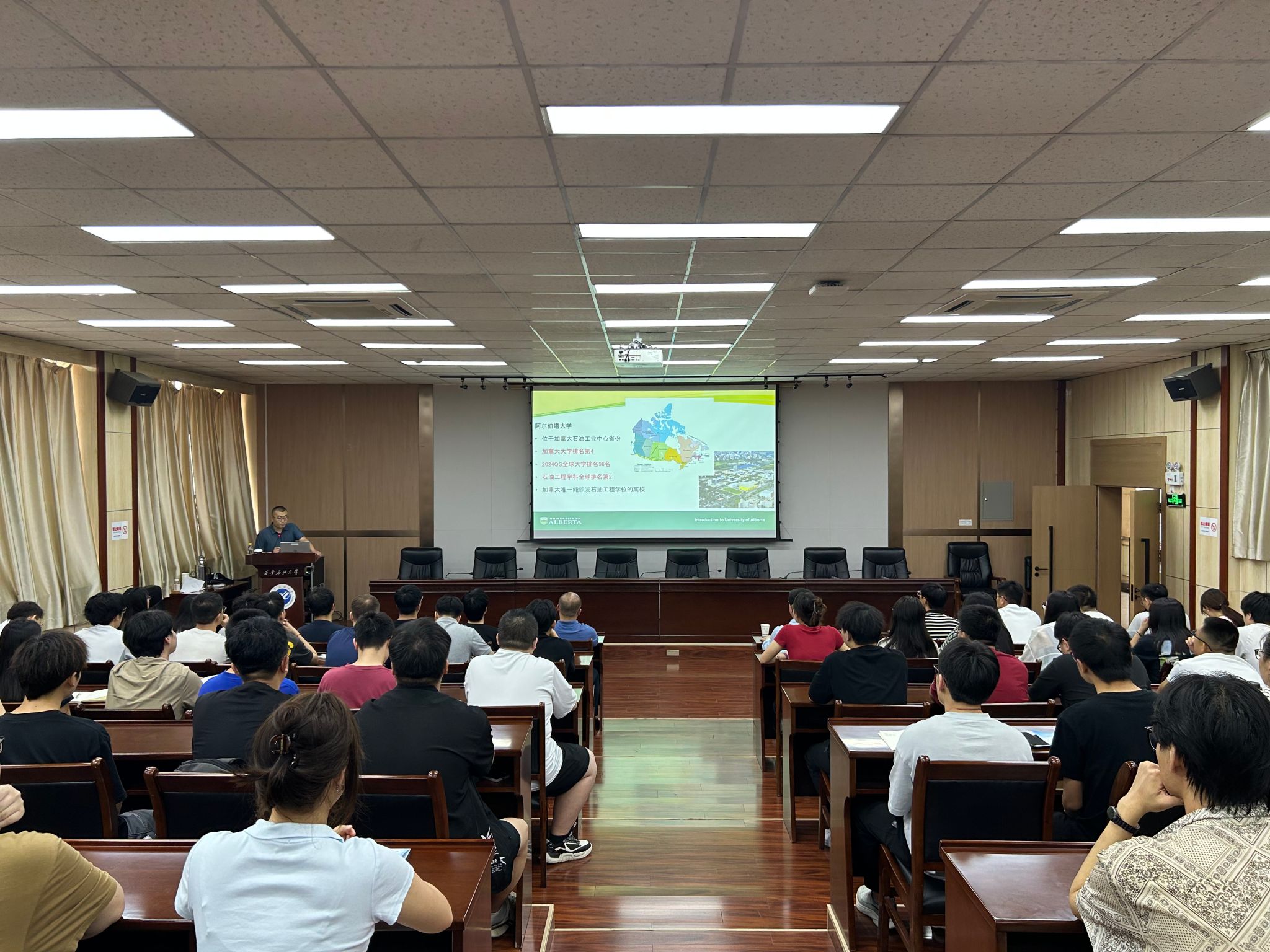 客座教授、加拿大阿尔伯塔大学终身教授、博士生导师李华周作了题为“气驱提高采收率相态行为研究进展”的学术报告,报告会由研究生院院长高辉主持。