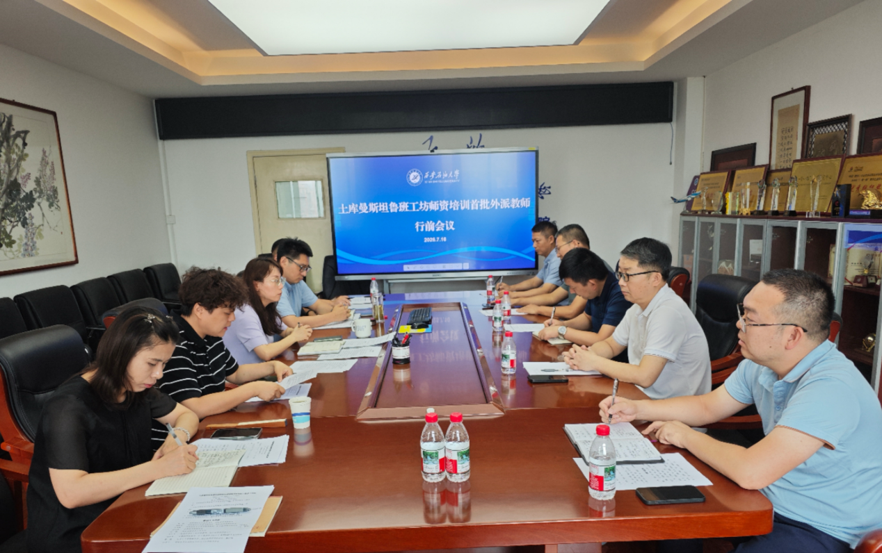 7月10日上午,国际合作与交流处在东方石油楼801会议室组织召开了土库曼斯坦“鲁班工坊”师资培训首批外派教师行前会。国际合作与交流处处长董皓,地球科学与工程德州扑克