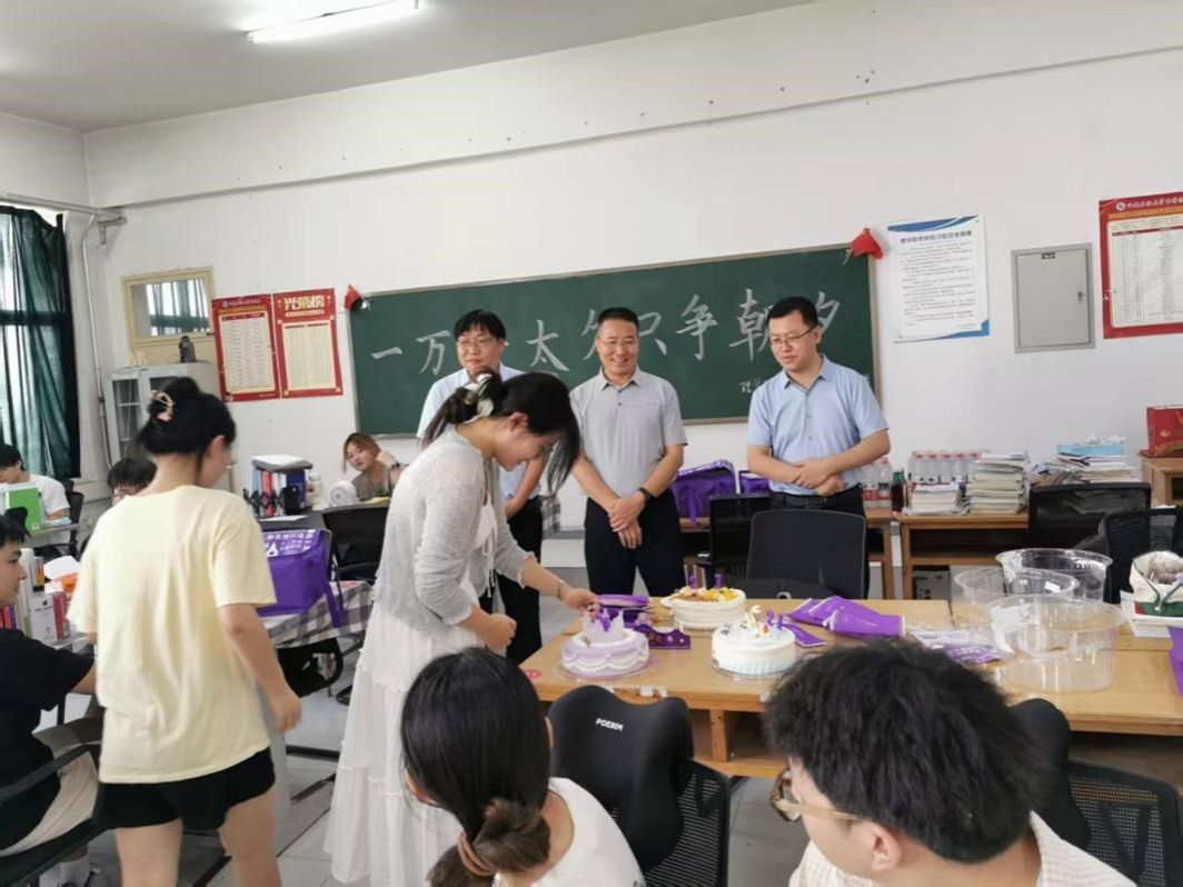 为过生日的三位同学钟传烺、曹梦婷、虞茗荃准备了生日惊喜,为同学们发放了西瓜、矿泉水等降暑慰问品,并送上了诚挚的暖心祝福。