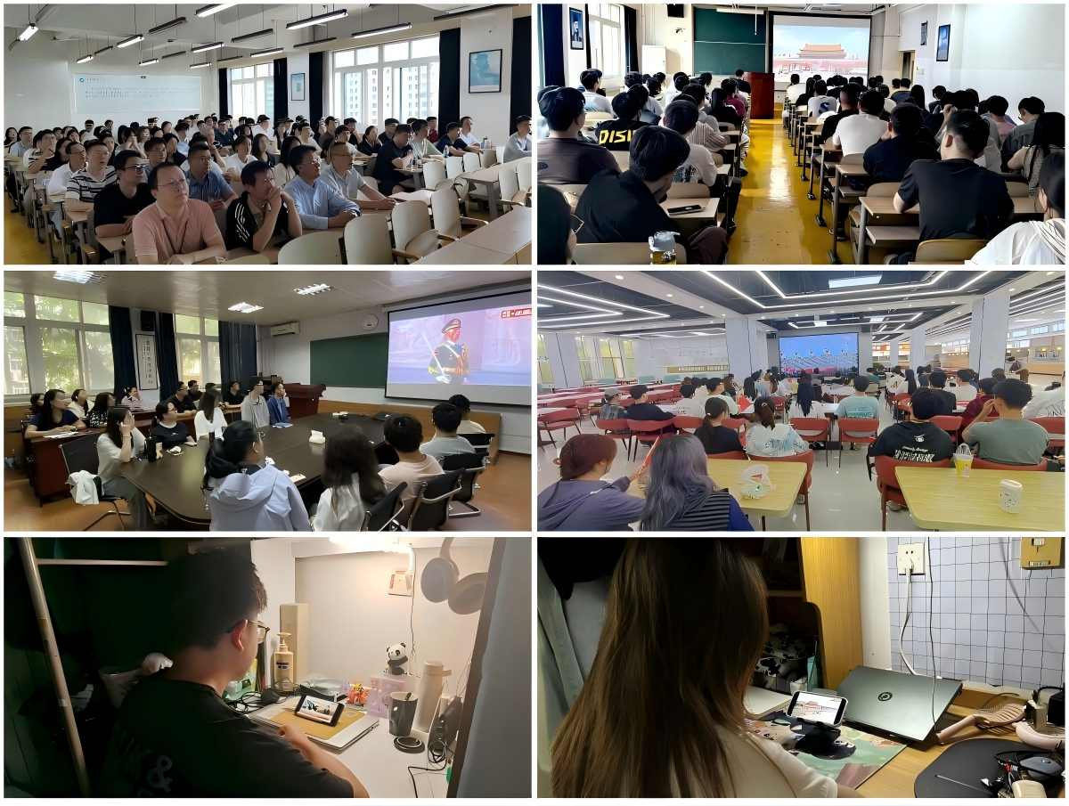 2025年9月3日上午,庄严的纪念中国人民抗日战争暨世界反法西斯战争胜利80周年大会在北京隆重举行。为加强研究生思想政治引领,弘扬伟大抗战精神,研究生工作部统筹安排,组织在校研究生采取集中观看与院系组织相结合的方式,全程收看大会直播,引导学生铭记历史、缅怀先烈、珍视和平、开创未来。