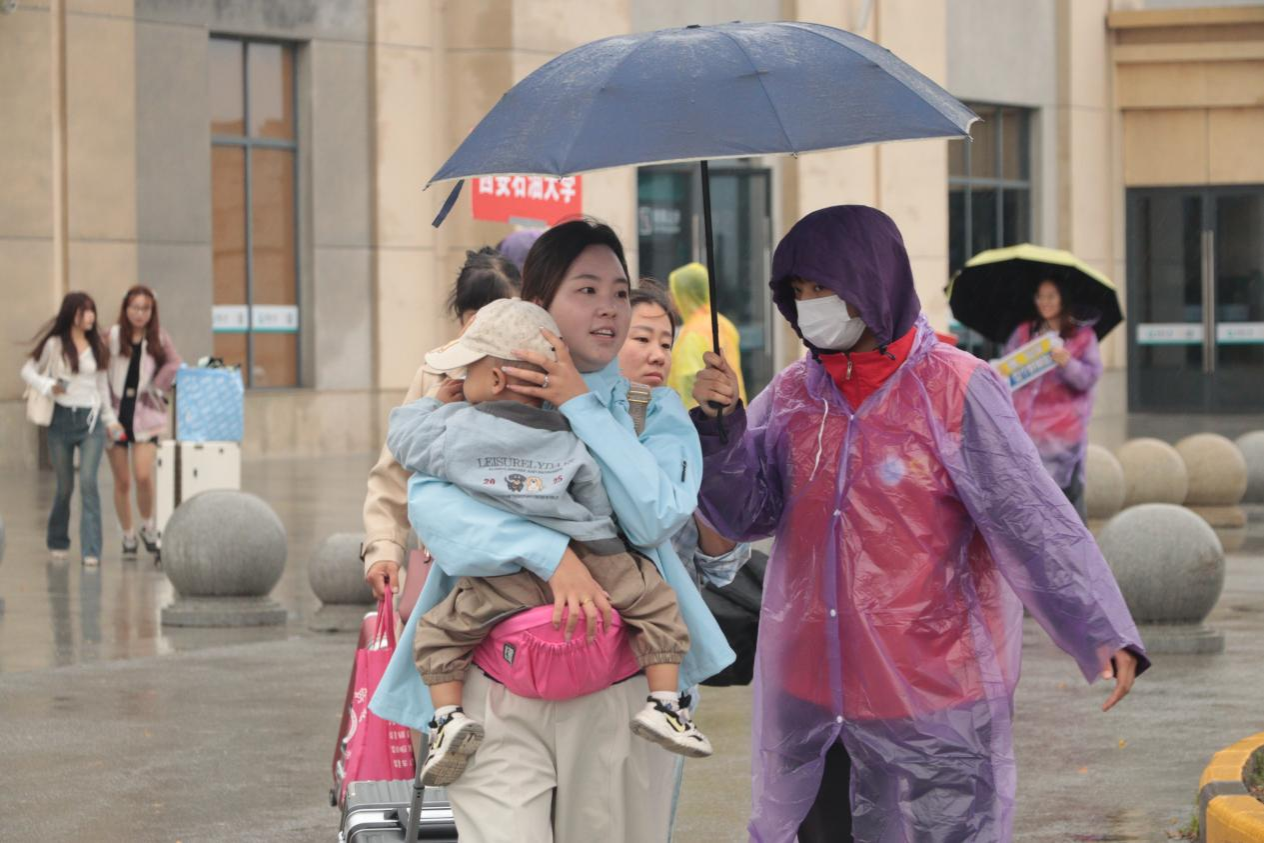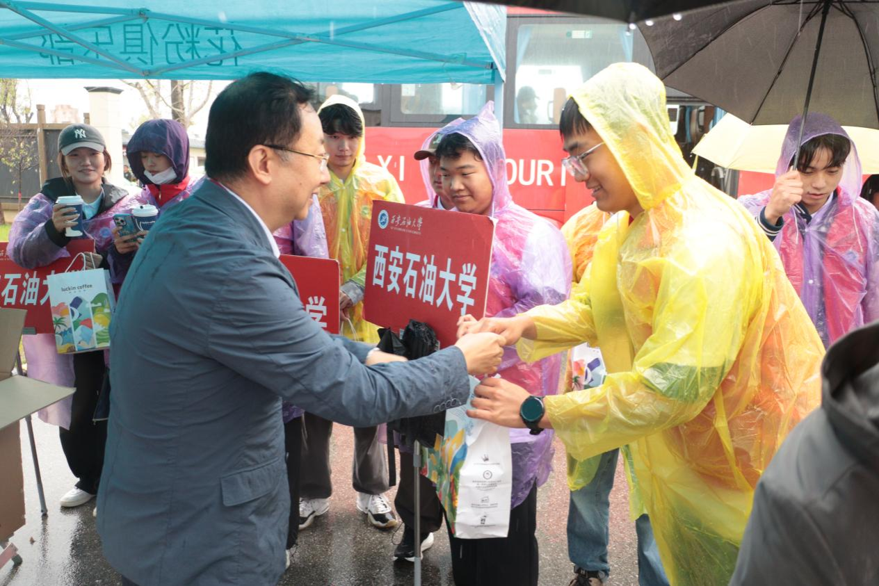 鄠邑高铁站作为新生抵达的重要点位,整体迎新志愿工作任务繁重、节奏紧张。志愿师生们穿梭在雨中,耐心引导、搬运行李,全身湿透毫无怨言。种宇宏详查看了迎新志愿服务的工作现场,详细了解了迎新工作情况,对大家有序的组织、饱满的热情和耐心的服务给予了高度肯定,同时也对大家不惧风雨、坚守岗位的奉献精神给予了高度赞扬。