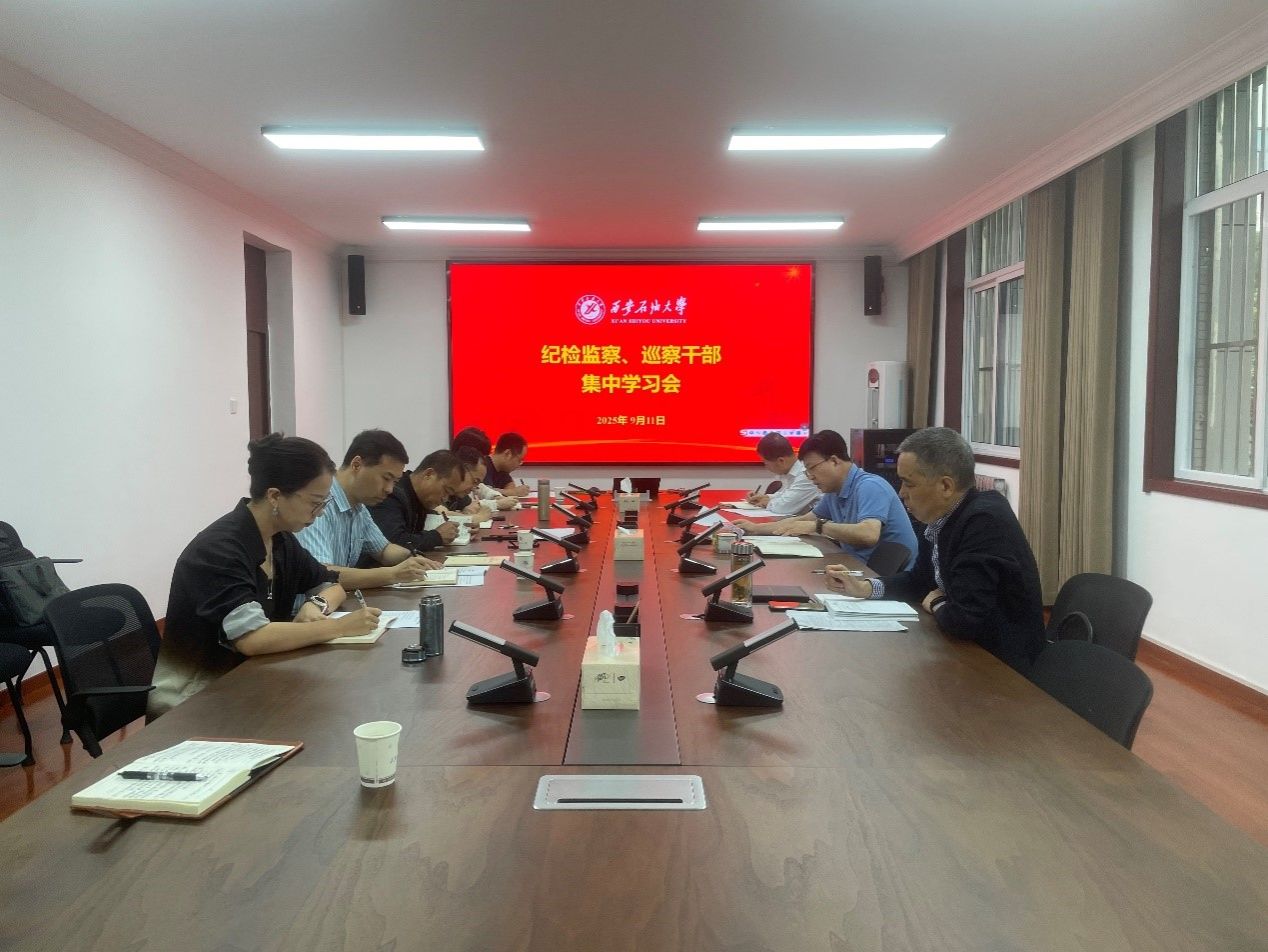 9月11日上午,纪检巡察干部2025年第15次集中学习会在鄠邑校区办公楼101会议室召开,纪检监察机构、党委巡察工作办公室全体干部参加。会议由校党委副书记、纪委书记、监察专员王辉强主持。