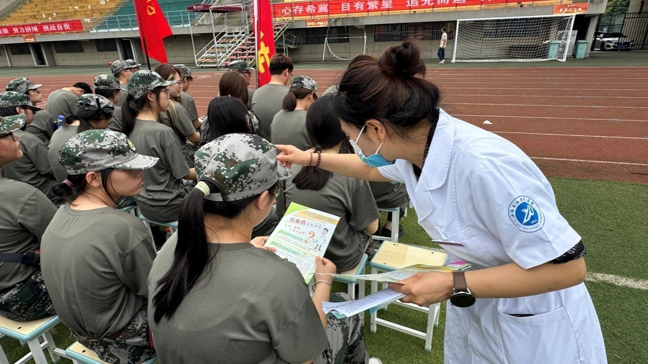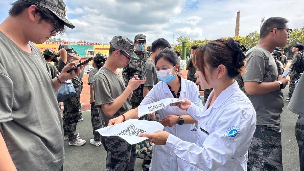 多维度服务,深化宣教实效:洪艳萍带领医务人员现场发放包含肺结核、肾综合征出血热、基孔肯雅热防控内容的传染病防治宣传手册,通过“集中讲座+一对一答疑”的方式,精准化解新生健康知识盲区;同时结合上午急救演练内容,指导新生在传染病(含肺结核、肾综合征出血热、基孔肯雅热等传染病)突发时的应急处置要点,强化“预防为先、科学应对”的健康理念。现场还组织新生完成艾滋病知晓率调查问卷,全面掌握新生健康知识储备情况,为后续开展精准化健康宣教提供数据支撑。