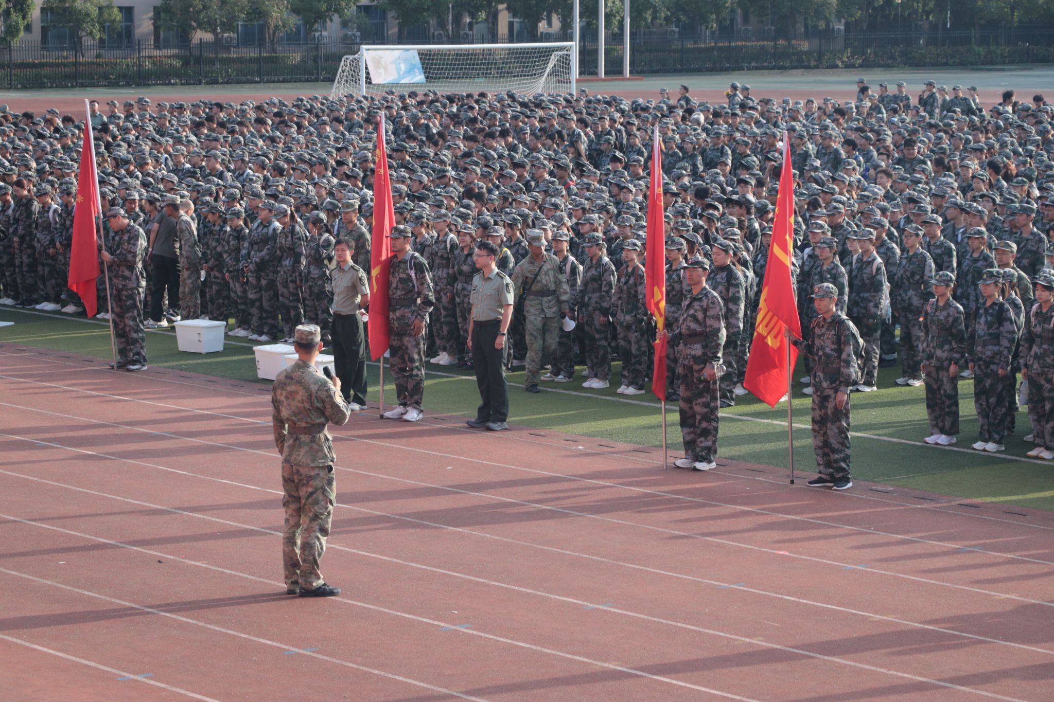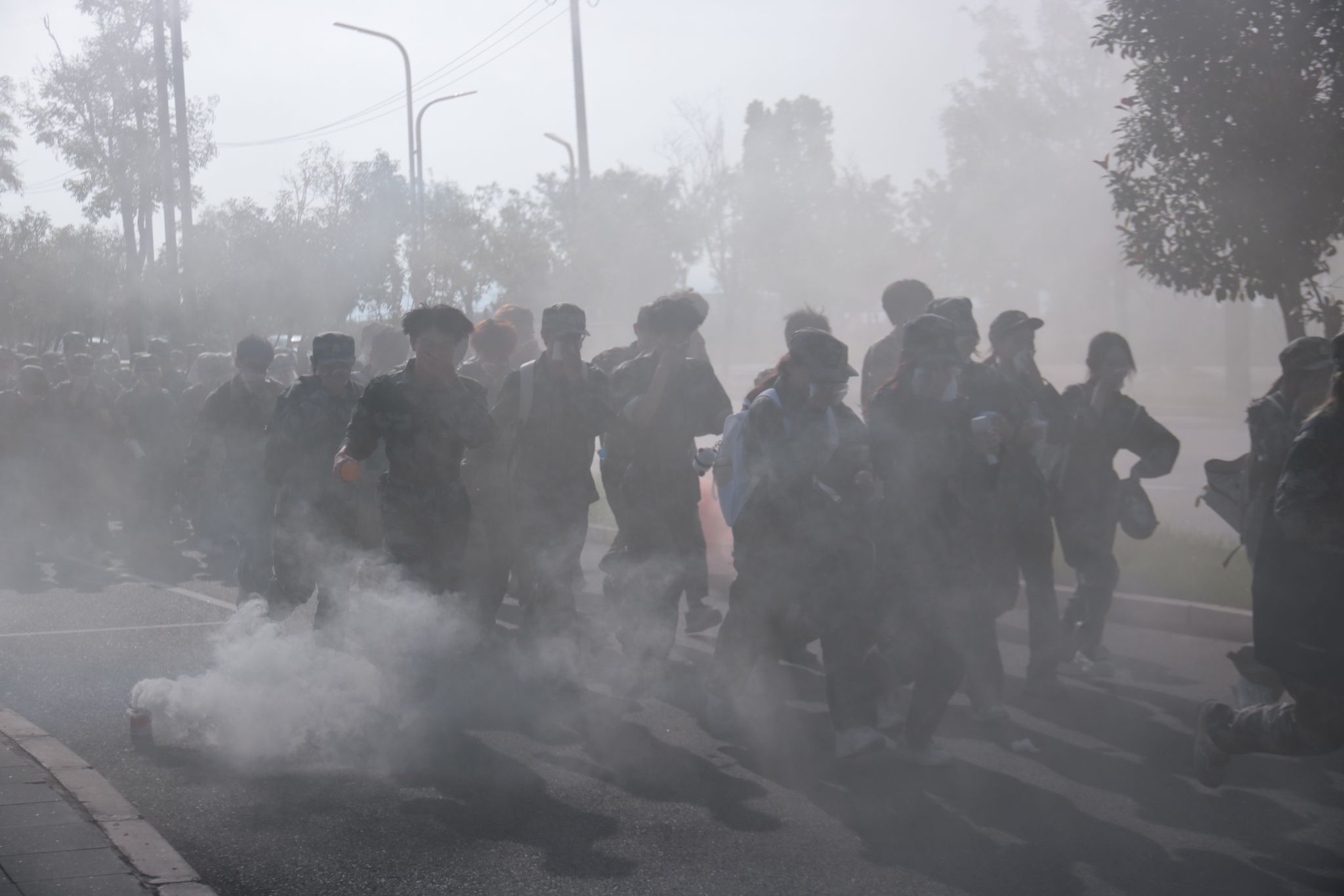 为提升训练实效,军训旅在行进过程中设置6项演练内容:常行军训练、队形变换训练、“传递口令” 训练,“敌机侦察过顶”处置、“通过50米烟火染毒地带”以及“通过100米烟火炮火封锁区”演练。参训新生严格按照要领完成任务,全程由情况导调组统筹协调,各连队教官与干部密切配合,确保演练有序开展。