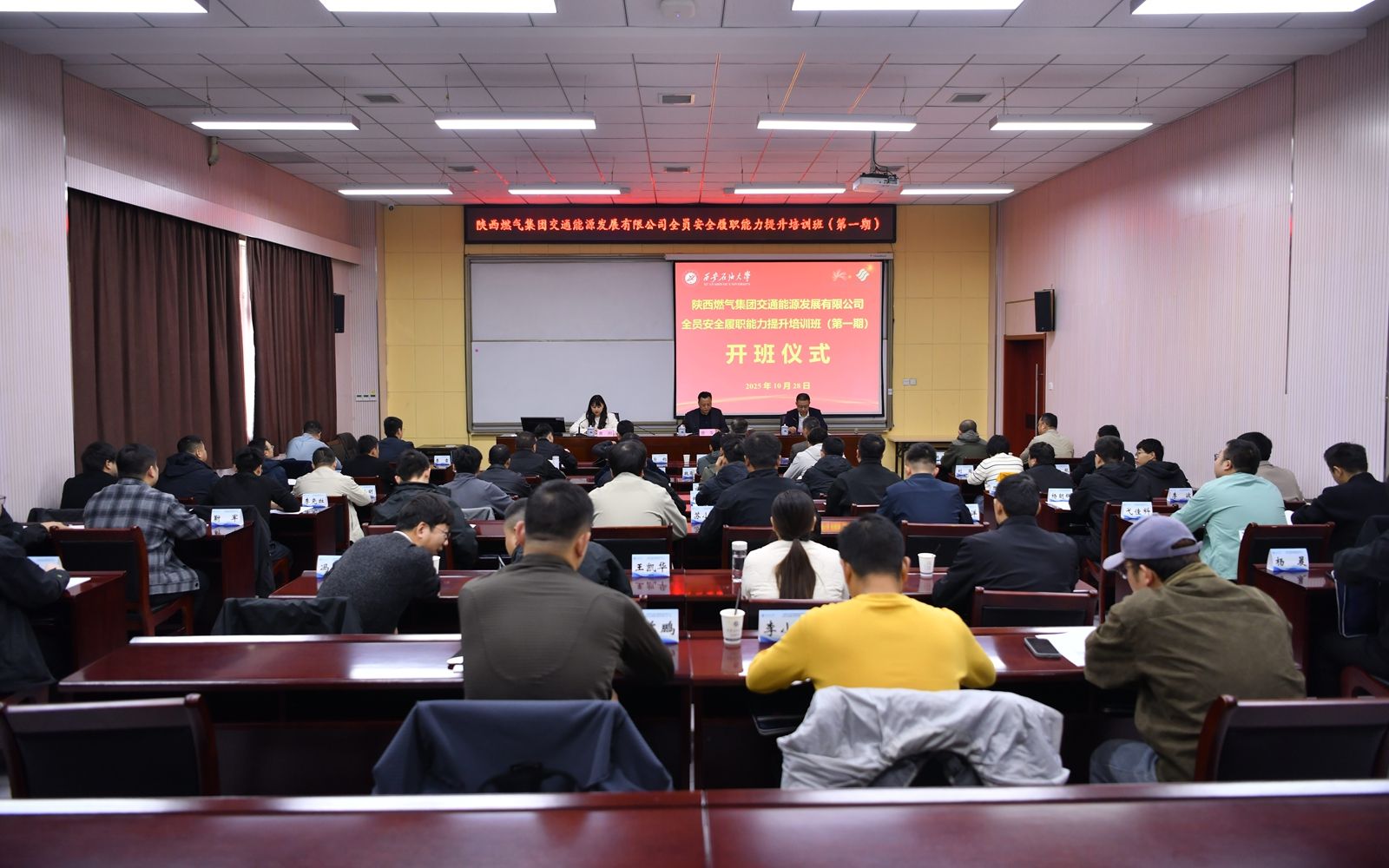 的历史沿革、办学特色及近年来培训中心的发展成就。他表示,陕西燃气集团交通能源公司作为省内能源骨干企业,始终秉持安全发展理念,在完善能源供应体系、保障民生用气安全等方面发挥了关键作用。本次培训校企双方携手共育安全专业人才,是深化产教融合、服务行业发展的创新实践。他期待双方持续拓展合作领域、创新合作模式,共同构建优势互补、协同发展的高质量合作新格局,为能源安全保障事业贡献更大力量。