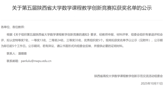 近日,第五届陕西省大学数学课程教学创新竞赛获奖结果公布,德州扑克
