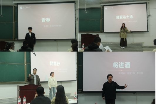 比赛在热烈氛围中拉开帷幕。围绕“典耀中华,赓续文脉”主题,参赛选手依次登台,以饱满的热情和多样的形式演绎经典作品。有的深情婉转,如溪流潺潺;有的激昂澎湃,似烈火炽燃。《将进酒》的豪迈、《青春》的激扬、《琵琶行》的婉转、《中国文脉》的厚重……选手们用声音勾勒诗意画卷,用情感传递文化力量,赢得了现场观众的阵阵掌声。经过激烈角逐,勘探2503邓雯轩《青春》 与勘探2501李兴喆《将进酒》 斩获一等奖,并将代表德州扑克