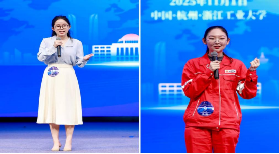 大赛决赛分为命题演讲和即兴演讲两个环节,全面考察选手的语言表达能力、逻辑思维深度以及临场心理素质。陆雨萌同学紧扣主题,结合自身专业学习与外语学习的实际,通过富有感染力的表达,充分展现了其扎实的语言功底和灵活的应变能力。施澜同学身着石油工服,在舞台上诠释着对能源安全的担当,她既满怀“铁人精神”,又将个人志向与全球发展议题紧密接轨。两位同学引经据典、绘声绘色的表现获得了专家评委们的一致好评。