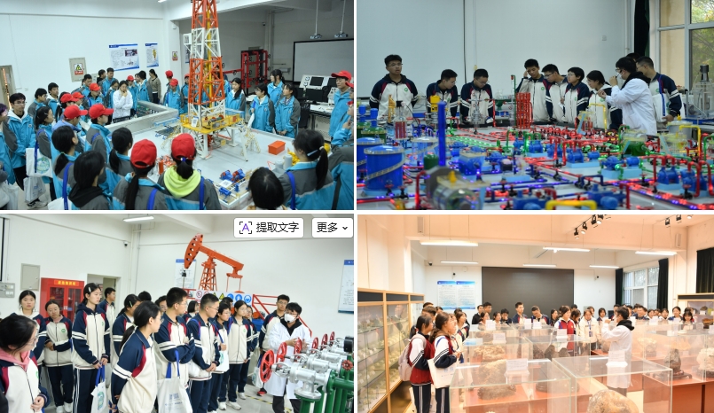 参观“两馆”结束后,师生们前往工程训练中心和石油石化虚拟仿真实验教学中心,开启科技与教育融合的体验之旅。中心工作人员详细介绍了虚拟仿真实验教学的技术优势、设备运行原理,以及该技术在石油石化专业教学中的具体应用场景,并现场演示了油气开采模拟、化工流程仿真等实验项目。同学们近距离观察设备运行、聆听专业讲解,直观感受到石油石化专业的学习内容与技术前沿,对行业未来发展方向有了更清晰的认知,科技赋能教育的魅力在此刻得到充分展现。