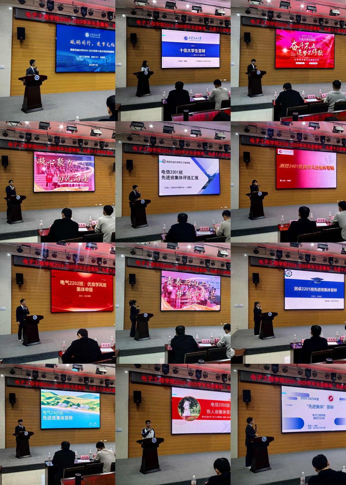 本次汇报会共有九个先进集体及三位先进个人进行现场汇报,先进集体学生代表围绕思想引领、党团建设、学风建设、志愿服务、专业竞赛、班级文化等方面进行了全面展示,彰显出各班级积极向上的班风、深厚浓郁的班级文化底蕴和团结蓬勃的班级凝聚力。三位先进个人也分别从思想成长、学习收获、综合素质等方面进行了汇报,充分展现了优秀学子的风采。