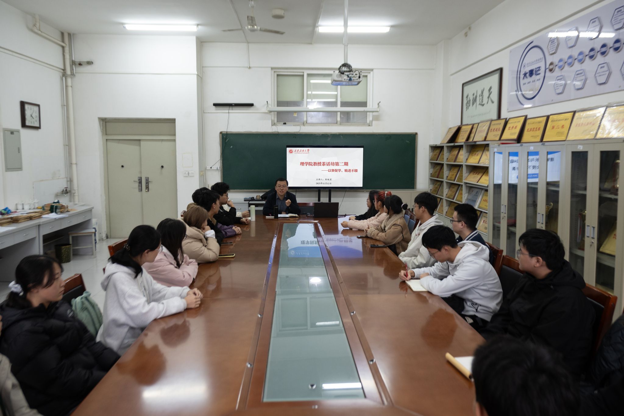 第二期“教授茶话坊”座谈活动顺利举行。本次活动由院长折延宏教授主持,聚焦“大学阶段如何高效参与学科竞赛”,与大二、大三年级学生代表展开深入交流,分享竞赛经验,解读支持政策,助力学生明晰发展路径。