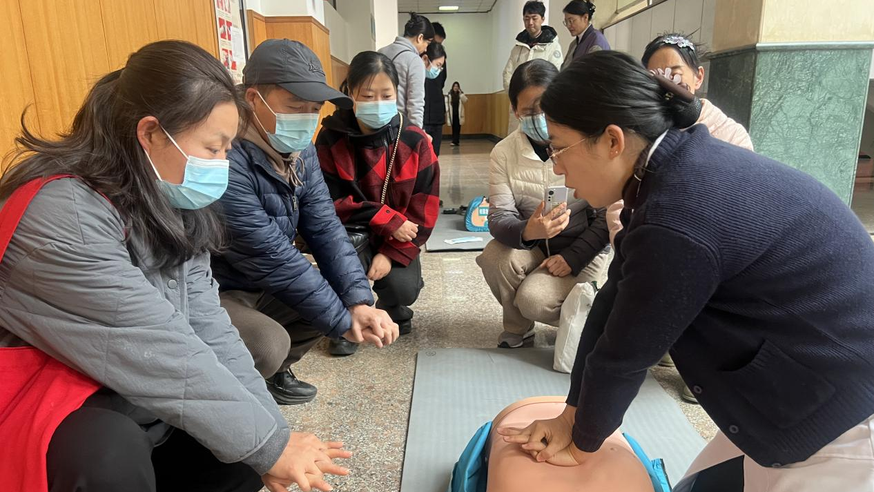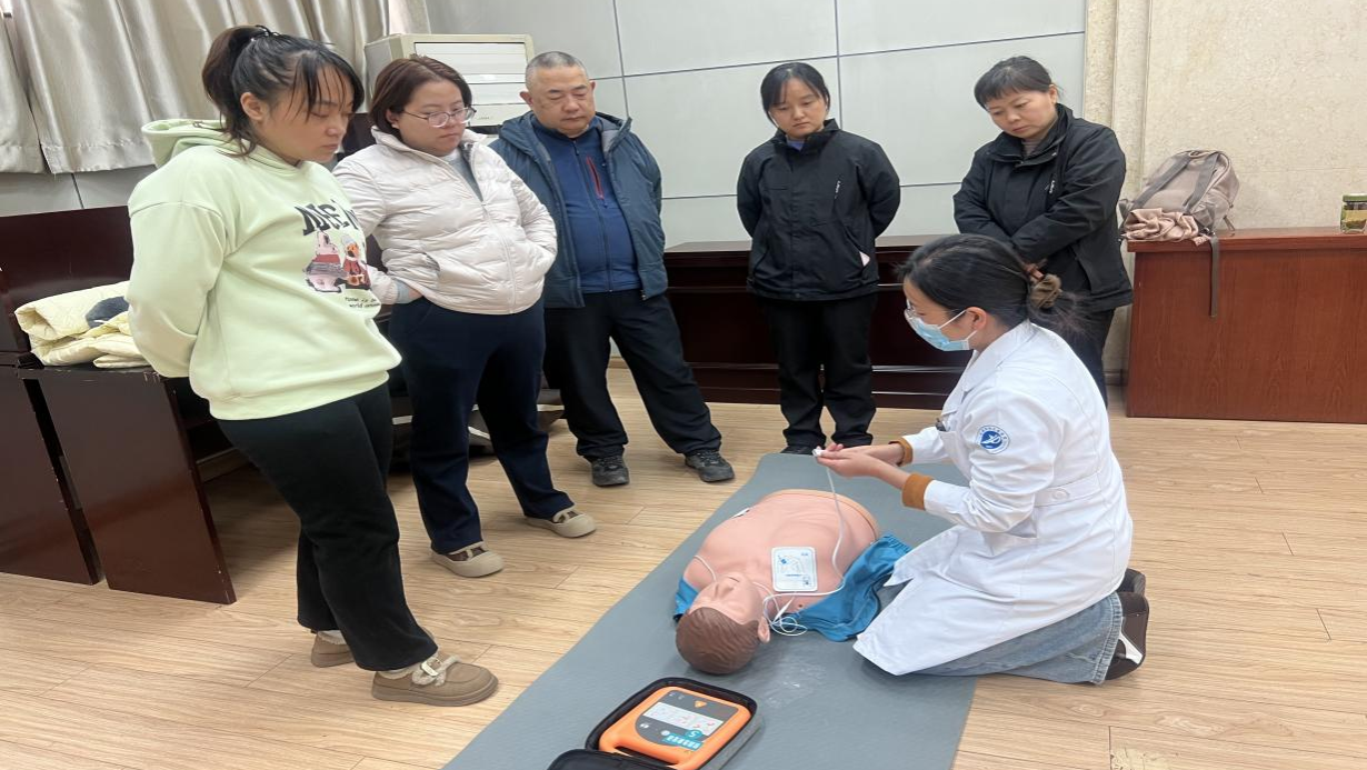 校医院副院长李文霞指出,应急救护是校园安全体系的重要基石,教职工作为校园关键群体,掌握急救技能对维护正常教学秩序、保障学生安全具有重要现实意义。她还向全体参训教职工详细介绍了校园内AED的具体放置位置,方便大家在突发情况时快速定位、及时取用。本次培训旨在通过“以点带面”的辐射效应,推动急救知识在校园内广泛普及与规范应用,助力构建“人人学急救,急救为人人”的校园安全文化生态。