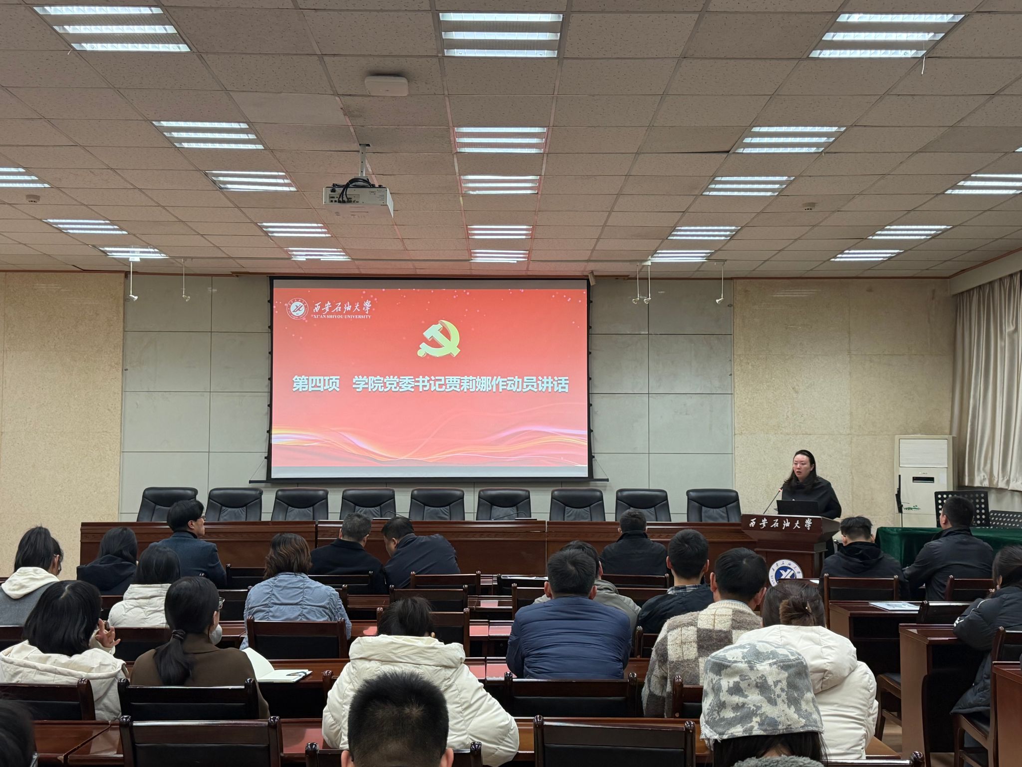 党委书记贾莉娜作动员讲话。她指出,党对教育工作的全面领导是办好教育的根本保证,必须坚定不移地贯彻落实党管办学方向、党管干部、党管人才等各项要求。党管一切,不是束缚手脚,而是要通过党的领导,凝聚各方力量,为德州扑克