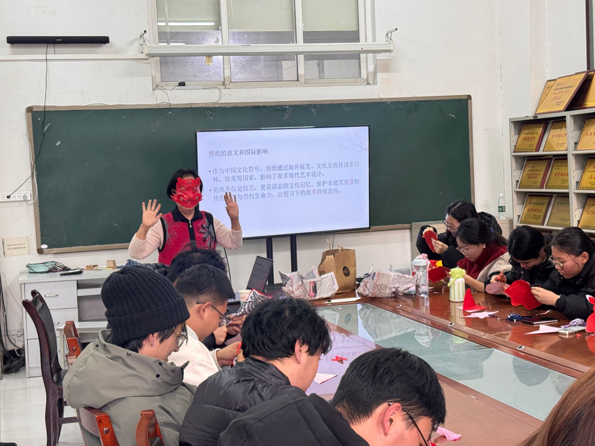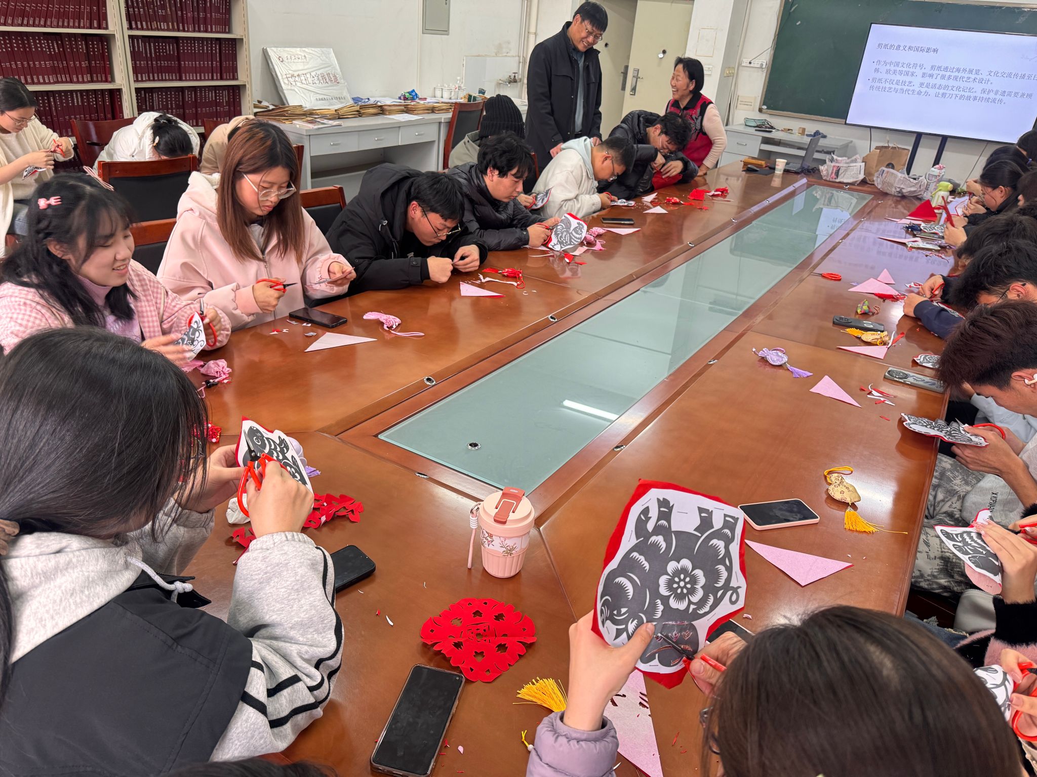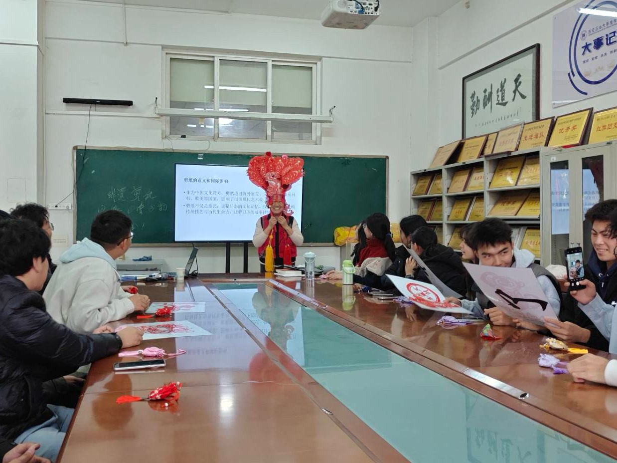 在心理育人路径上的一次创新实践。通过剪纸这一艺术媒介,学生们不仅在实践中实现了情绪的表达与压力的释放,更在传统文化的浸润中获得了内心的平静与力量。活动有效提升了学生的自我认知与情绪调节能力,在感受非遗魅力的同时,也增强了人际互动与团体归属感,为构建积极健康的心理提供了有力支持。一纸一匠心,一剪一青春,活动剪出创意与情谊,更让文化根脉在青春力量中绵延不息,激励青年学子成为非遗的传承者与创新者。