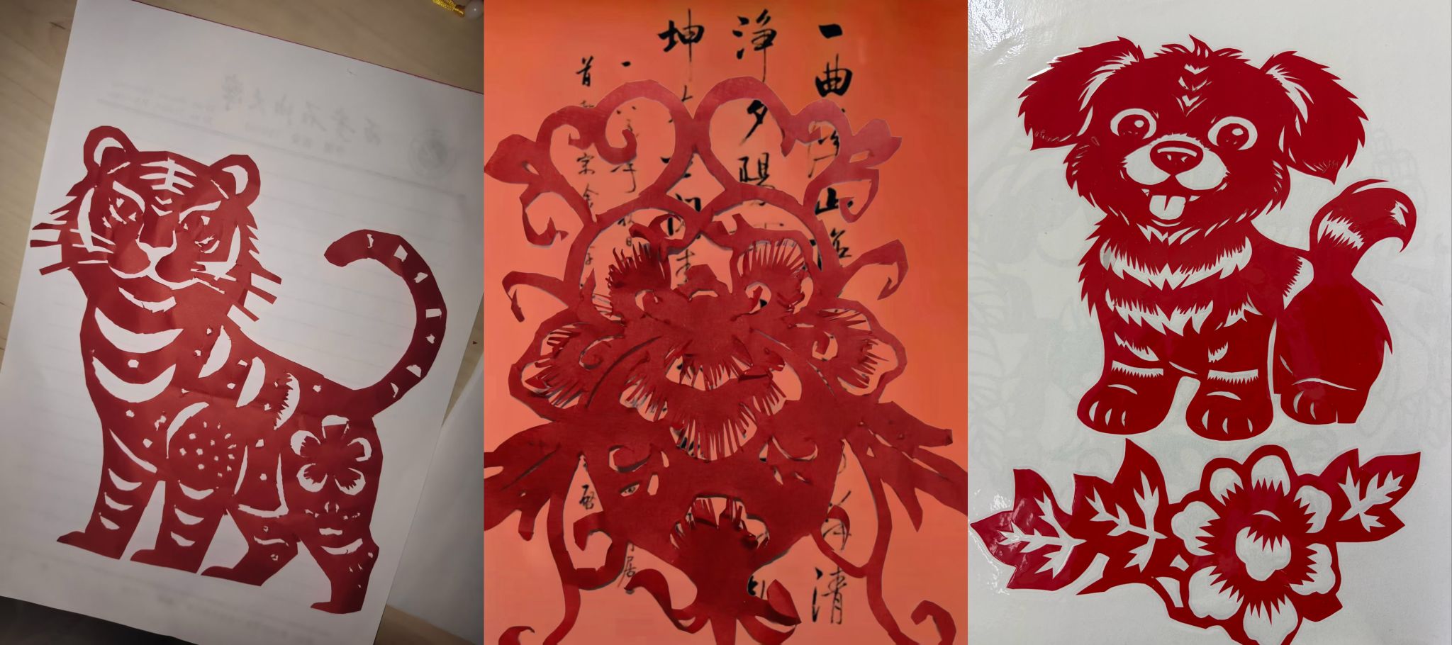 在实践展示环节,肖志贤老人展示出令人惊叹的剪纸技艺。只见她手中剪刀行云流水、纸屑纷飞,不过片刻,一幅幅精美灵动的图案便跃然眼前,引来同学们阵阵欢呼。在肖老师的带动下,大家纷纷动手尝试,全神贯注于折纸、勾画、裁剪之间。伴随着剪刀起落,一朵朵红花、一只只灵兽逐渐在指尖绽放,现场气氛热烈而温馨,充满成就感和欢声笑语。