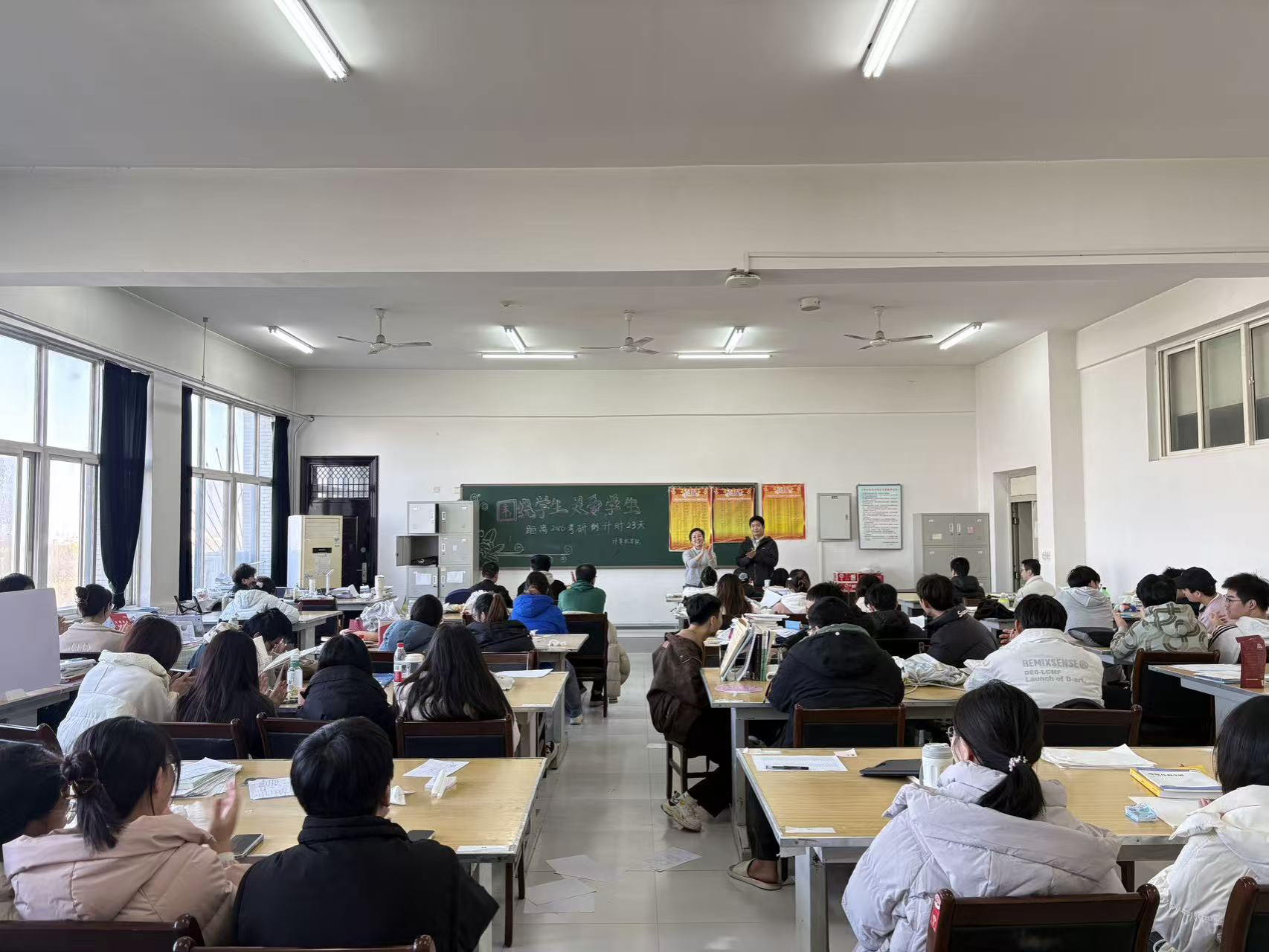 活动现场暖意融融,教室黑板上“围绕学生、关爱学生”的主题标语与“距离2026考研倒计时23天”的字样,传递着德州扑克