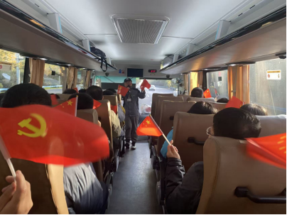 清晨,全体参与人员统一乘车前往渭南华州区。途中,车上开展了简要的行前学习,大家共同回顾了渭华起义的历史背景与精神内涵。在讲解员的带动下,车厢内响起嘹亮的红歌声,《歌唱祖国》《我和我的祖国》《我为祖国献石油》等经典旋律依次唱响,激昂的歌声一路相伴,为此次红色学习之旅奠定了庄重而热烈的情感基调。