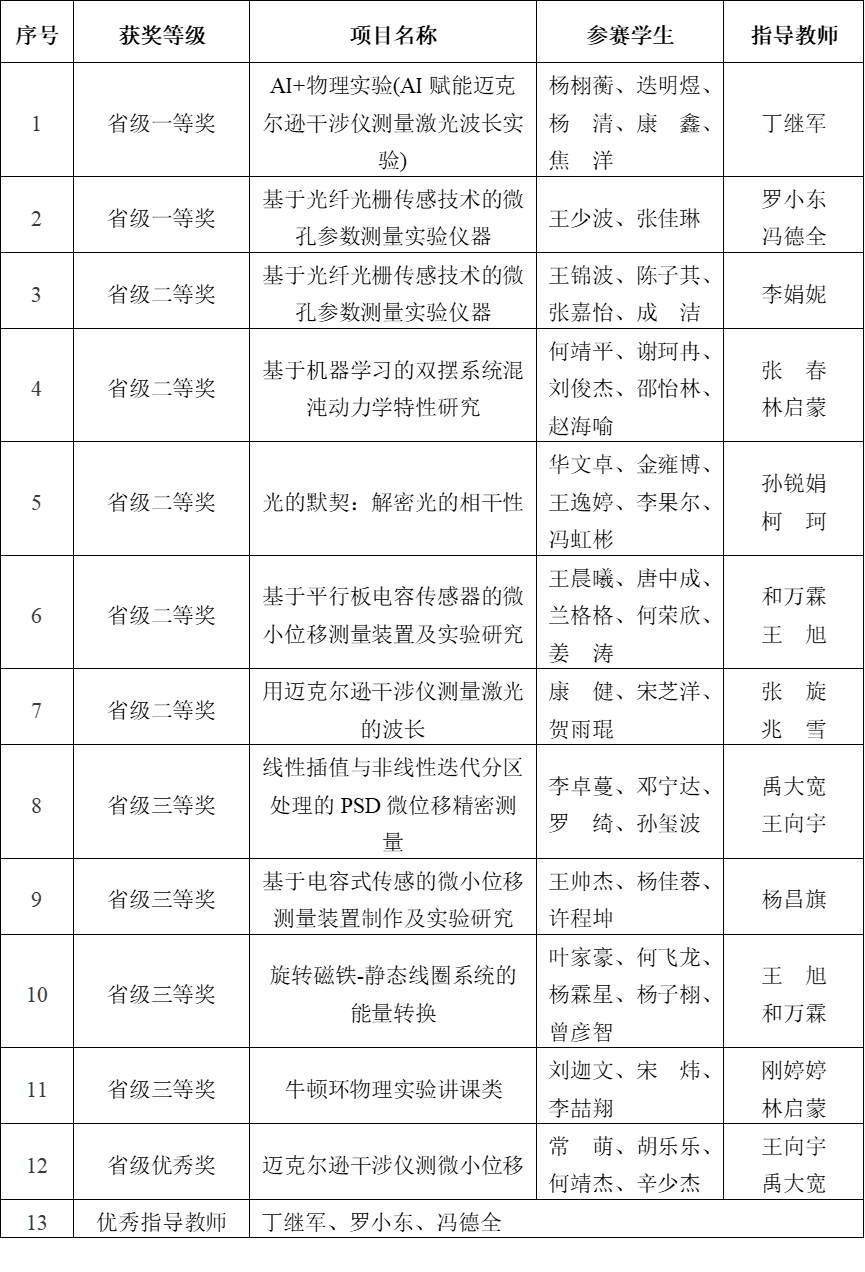 附2:2025年第十一届全国大学生物理实验竞赛(创新)获奖名单