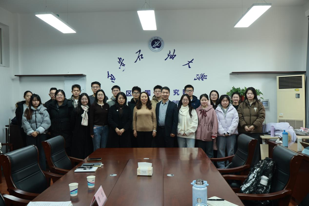 区域国别学硕士研究生企业导师唐龙在雁塔校区华油能源楼F303A作题为《百年变局时代下的新能源项目管理与区域国别人才未来思考》的专题讲座,陕西中联建业科技有限公司董事长郭润芳一同出席。讲座由区域国别研究院教师、2025级研究生辅导员薛亦凡主持,研究院全体硕士研究生及部分教师参加。