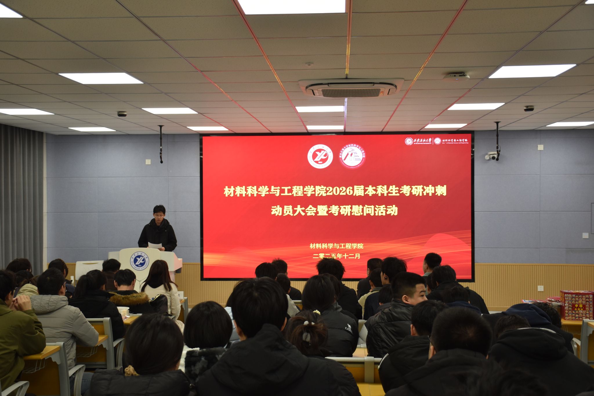 在鄠邑校区博览楼110教室举行2026届本科生考研冲刺动员大会暨考研慰问活动。德州扑克