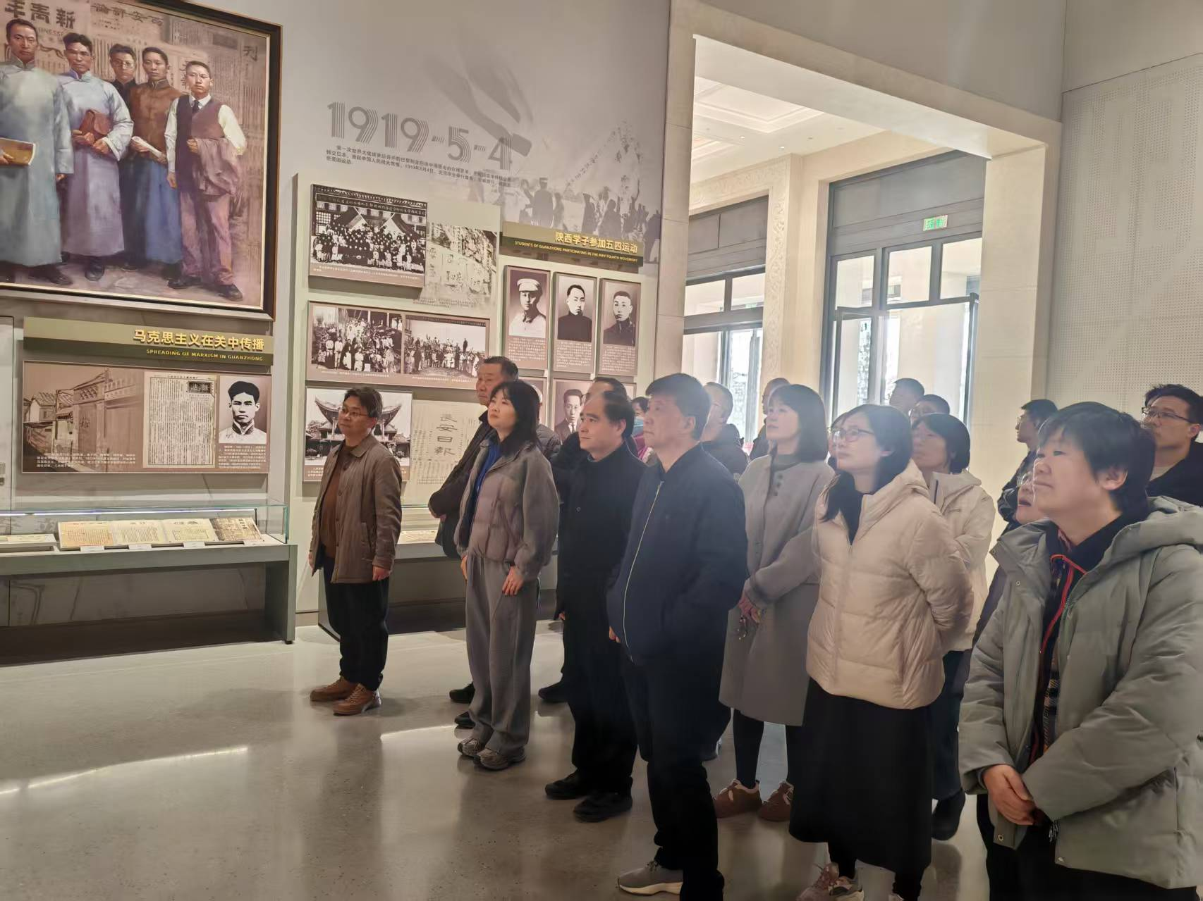 关中革命纪念馆系统呈现了关中地区人民群众在中国共产党的领导下英勇革命的伟大历程,集中展现了习仲勋同志光辉革命生涯和崇高风范,反映了新时代以来三秦大地广大干部群众奋力谱写中国式现代化建设陕西新篇章的生动实践。在讲解员的引领下,大家有序步入纪念馆展厅。一幅幅珍贵的历史图片、一件件斑驳的实物展品、一份份详实的文献资料,生动再现了关中地区波澜壮阔的革命历程,深情讲述了革命先辈们在极端艰苦的条件下,为了民族独立和人民解放,抛头颅、洒热血的英勇事迹和崇高精神。同志们驻足凝视,心怀敬佩,深刻感受着那段烽火岁月里共产党人坚定的理想信念、顽强的斗争意志和无私的奉献精神。通过沉浸式的参观学习,大家对关中地区的革命历史有了更系统、更直观的了解,对中国共产党人的初心使命有了更深刻、更具体的感悟。