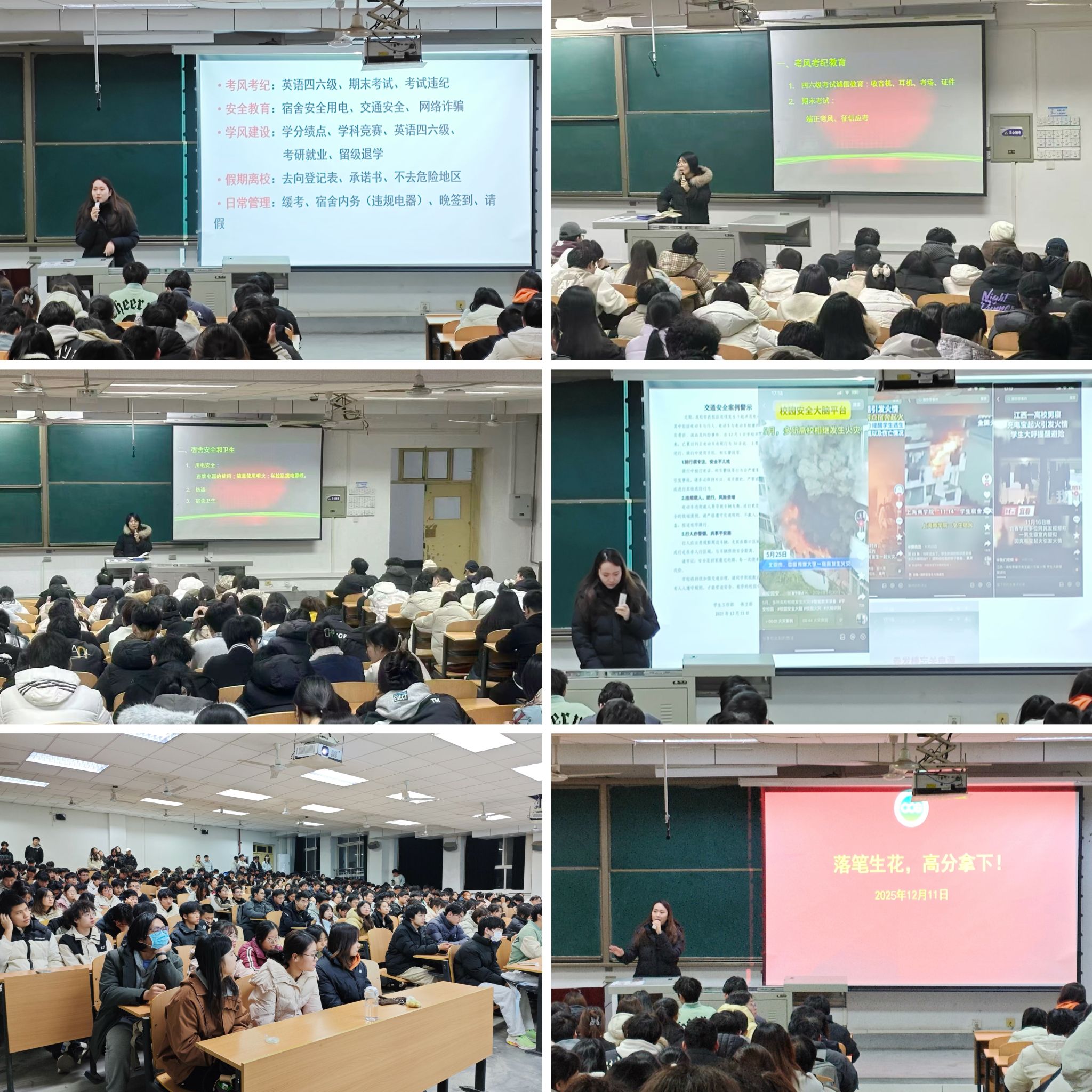 分年级召开诚信考试暨期末安全主题教育大会,各年级辅导员担任主讲,全体学生参会。