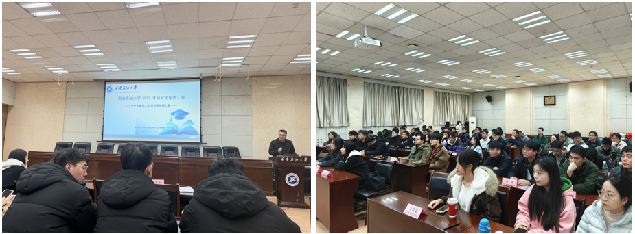 研究生工作部关于2025年研究生学风建设暨学术文化活动月的安排部署,12月19日,石油工程学院、机械工程学院、管道工程学院于雁塔校区会议中心第三会议室共同开展主题为“研途论道促提升 学科交融启新篇”研究生学术报告会,共100余名研究生代表参与报告会,报告会由研究生辅导员宋兴淼主持,各学院研究生代表围绕学科前沿动态、科研实践成果、技术创新应用等内容展开深入交流,共同奏响了一曲学科交融、研思并进的青春乐章。