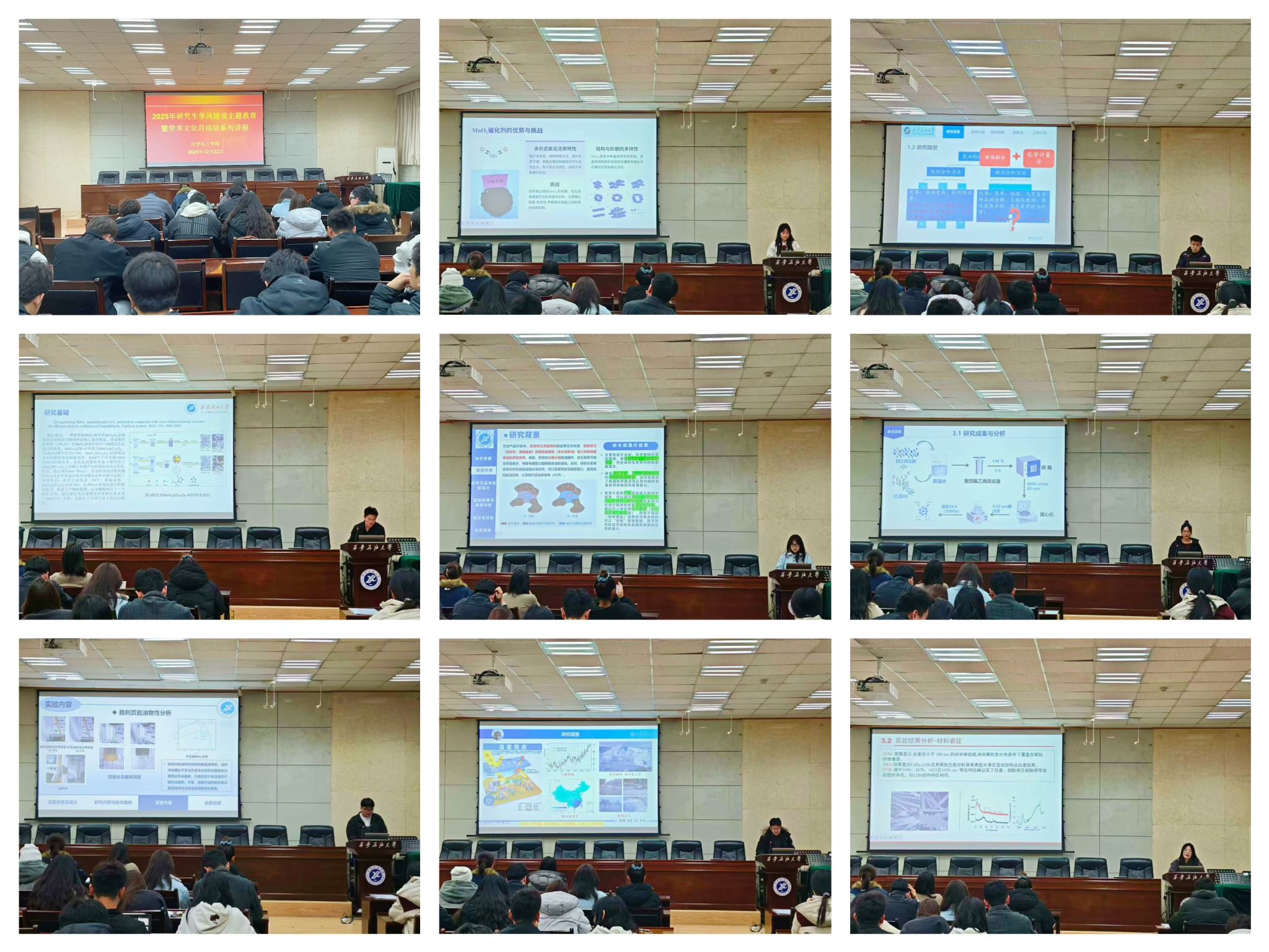研究生工作部关于2025年研究生学风建设暨学术文化活动月的安排部署,12月22日下午,化学化工学院在雁塔校区会议中心第三会议室成功举办2025年研究生学术文化月第二场学术报告。本场活动中,8位优秀研究生围绕能源催化、环境治理、功能材料等前沿领域作学术汇报,充分展现了扎实的学科素养与活跃的科研思维。学院专业教师于旭莹、刘瑞,综合办公室秘书冯旭亮,研究生辅导员曹勃及各年级研究生代表参会。