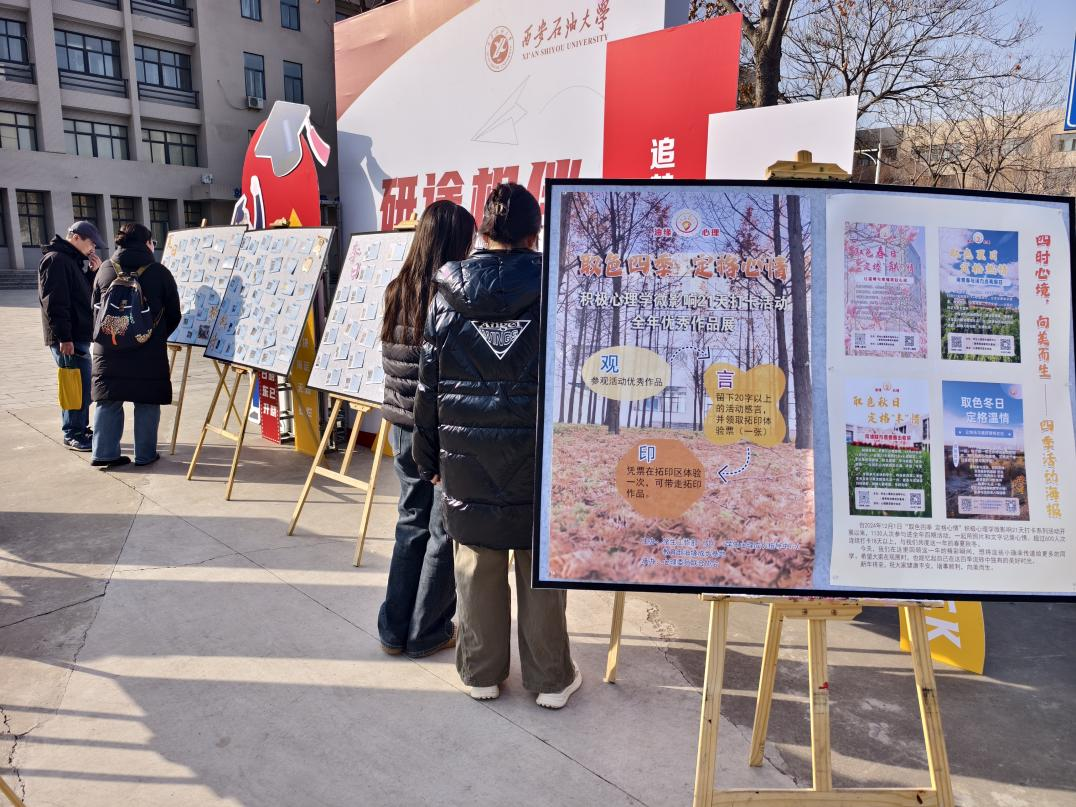 春日打卡聚焦家校联动,一张张照片跨越山海,让亲情在镜头下愈发醇厚;夏日打卡让同学们彼此看到,假期不只是假期,大家也都在各自忙碌着,实习、社会实践、打工、旅游,展示多样的生活;秋日打卡以新生适应为切入点,带领大一学子漫步校园,在满目金黄中解锁美的视角;冬日打卡则以温情为底色,让平凡日常里的温暖瞬间,成为驱散寒意的力量。四季轮回,84天的持续陪伴,活动累计吸引1300余名师生及家长参与,收到15000余份饱含真情的图文记录,真正让朋辈引领的力量,在美育与心理成长的交融中持续绽放。