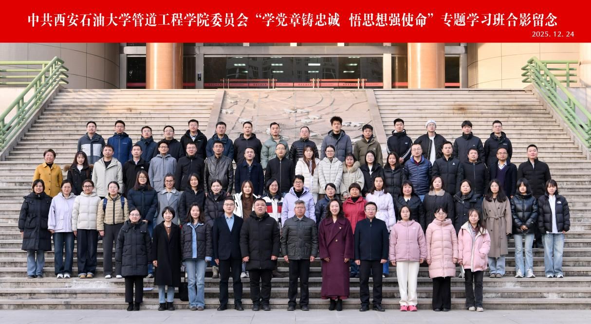 2025年12月24日下午,管道工程学院党委在雁塔校区西阶第三会议室开展“学党章铸忠诚,悟思想强使命”专题学习班第四讲暨结业仪式。校党委委员、副校长张骁勇出席并作第四讲专题报告,学院班子全体成员、全体教工党员、研究生党员代表70人参加仪式。仪式由学院党委副书记高亮主持。