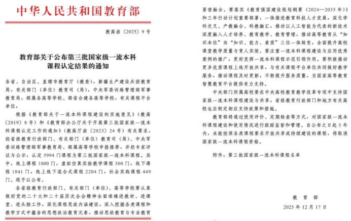 近日,教育部发布了《教育部关于公布第三批国家级一流本科课程认定结果的通知》(教高函〔2025〕9号),我院2门课程获得认定,实现了课程建设的历史性突破。“大学英语”课程同时获批国家级线上一流本科课程与国家级线上线下混合式一流本科课程。截至目前,我院共获批国家级一流本科课程2门、省级课程建设项目9门。